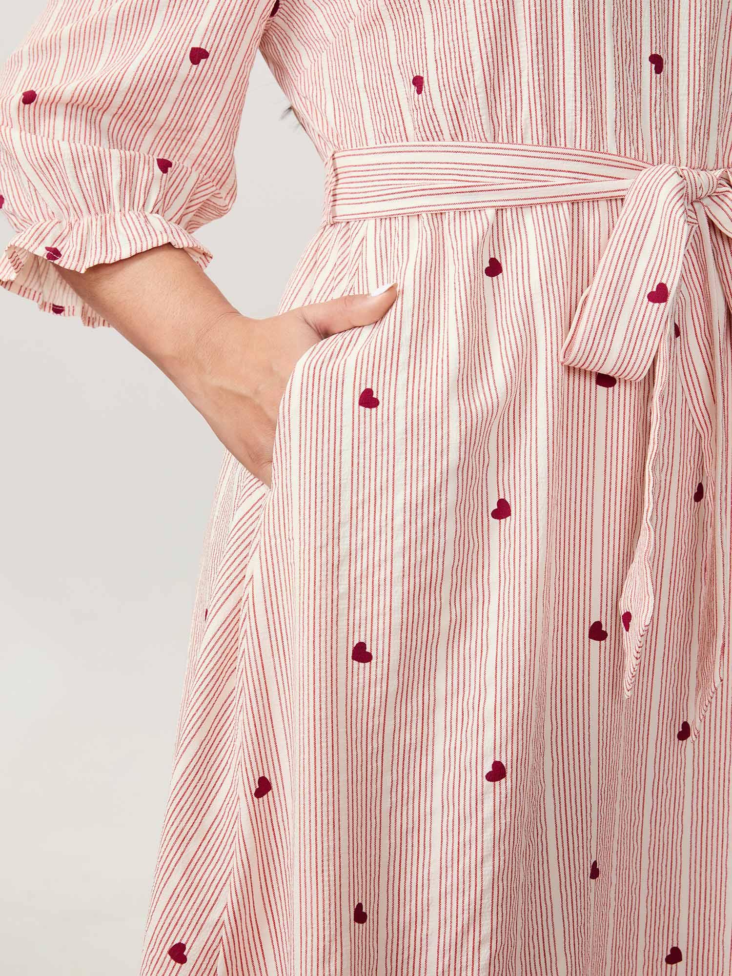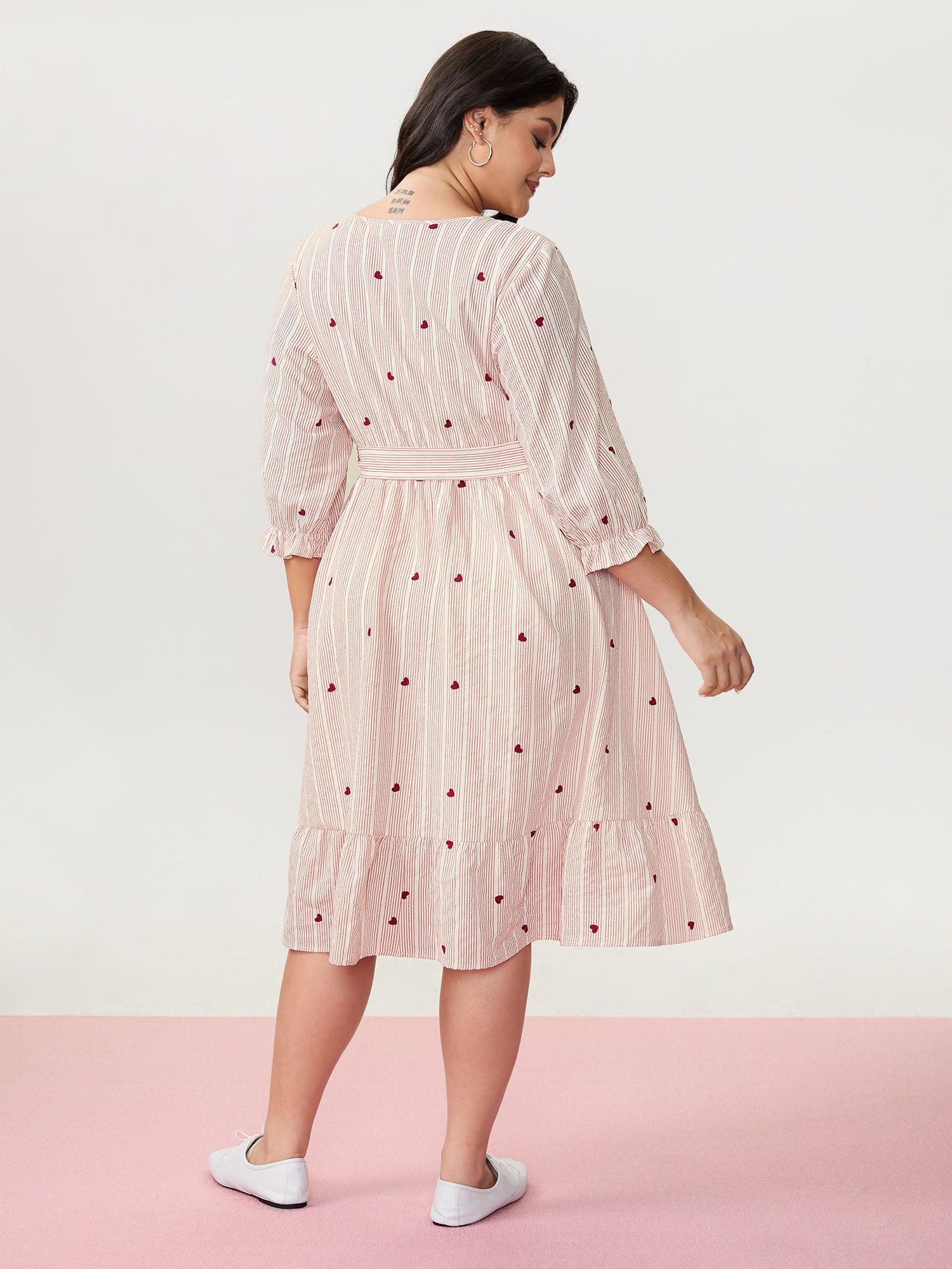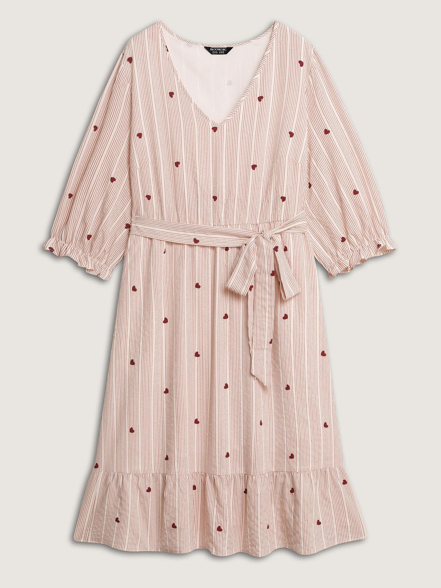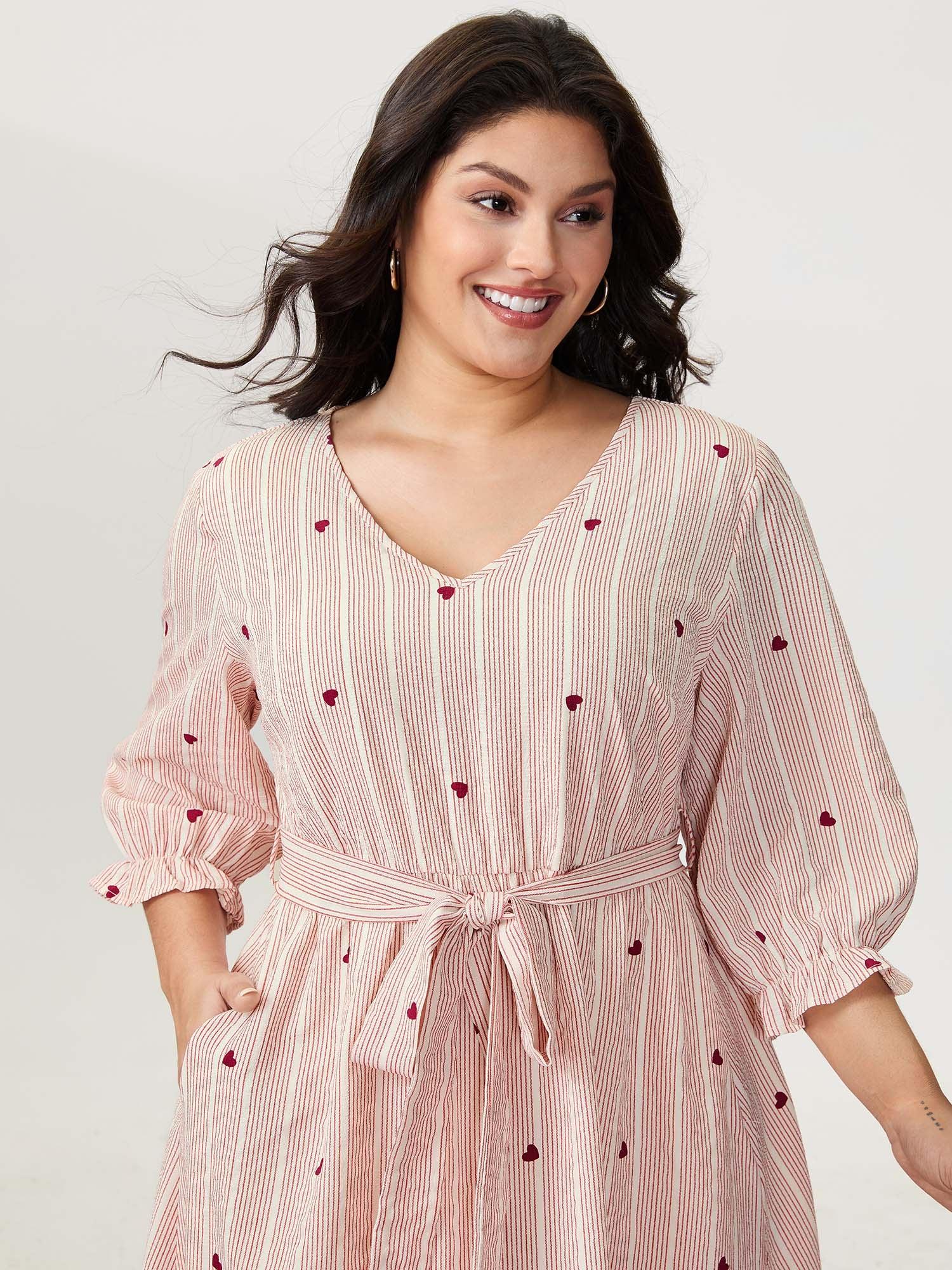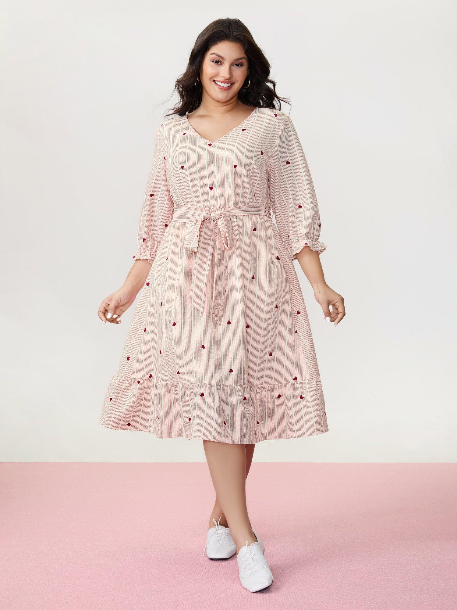Shop Romantic Ruffled Sleeve Pleated Waist Midi Dress now and redefine your style with confidence at BloomChic. Tailored for mid and plus-size women. This trendy Dress, sizes 10-30. You can never go wrong with BloomChic Dresses. Color:Originalwhite;Style:Playful;Neckline:V-neck;Sleeve Type:Ruffle Sleeve;Prints:Stripes;Details:Belted;Pocket:Side seam pocket;Belt:Belt;Closure Type:Non