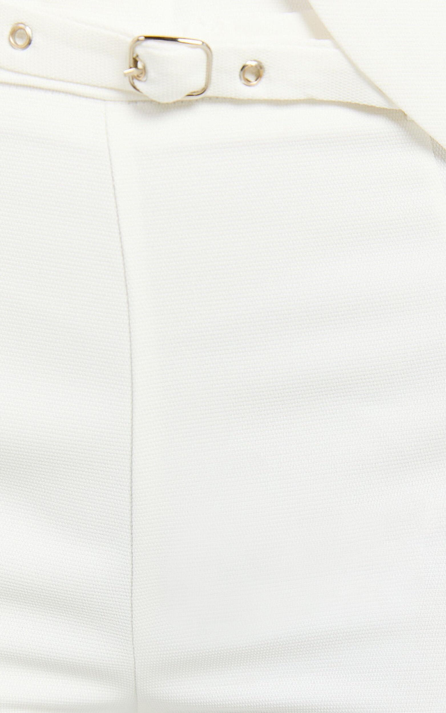 **Romeo Pants - Straight Leg Mid Waist Tailored Pants In White**Product Details:Zips detailsStraight legTextured woven fabricFull lengthPolyester materialMid waistIdeal for workwearSize and FitSize S / 8 length: 109cm / 42.91inMaterial and Care100% PolyesterNo Stretch