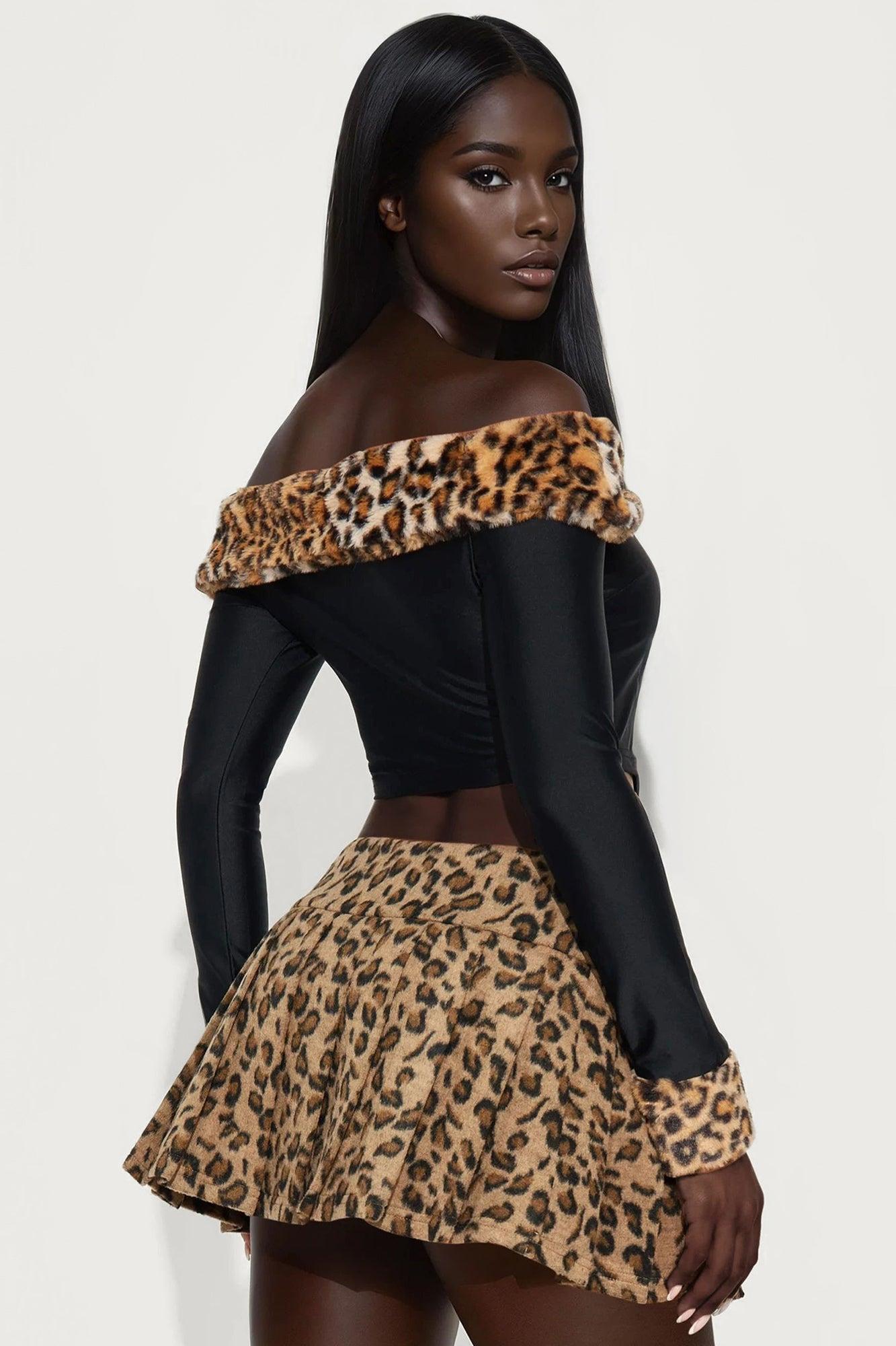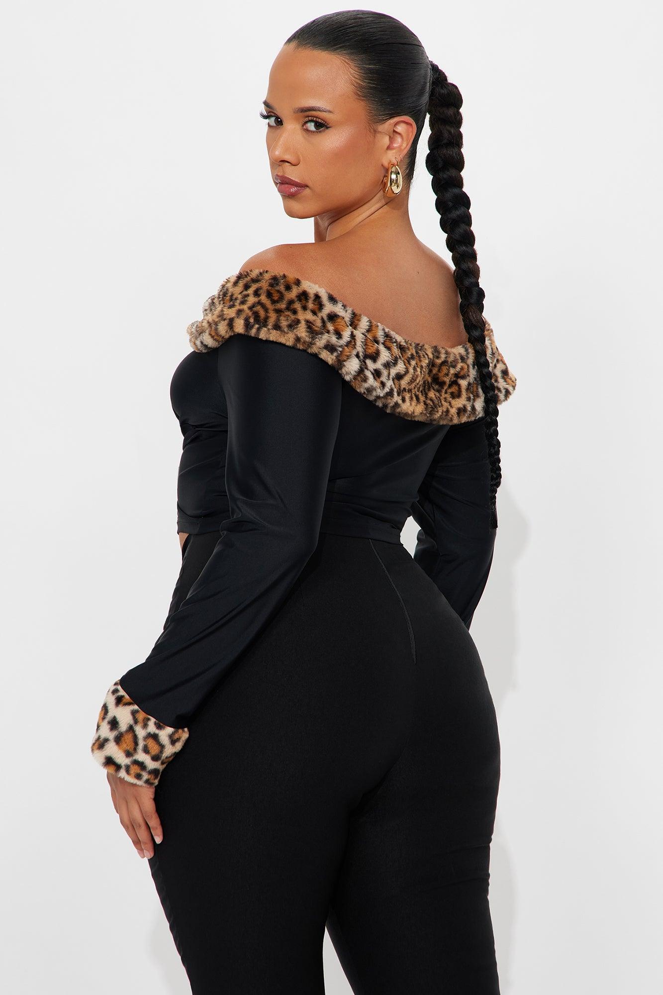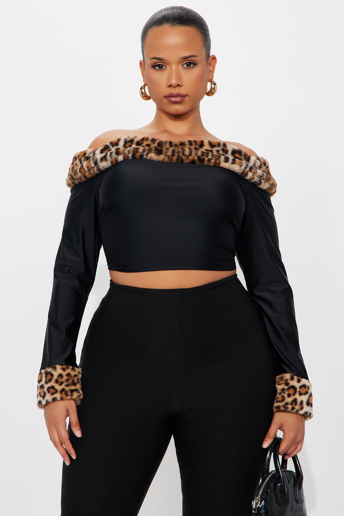 Romy Fur Trim Off Shoulder Top - Black/combo Female
