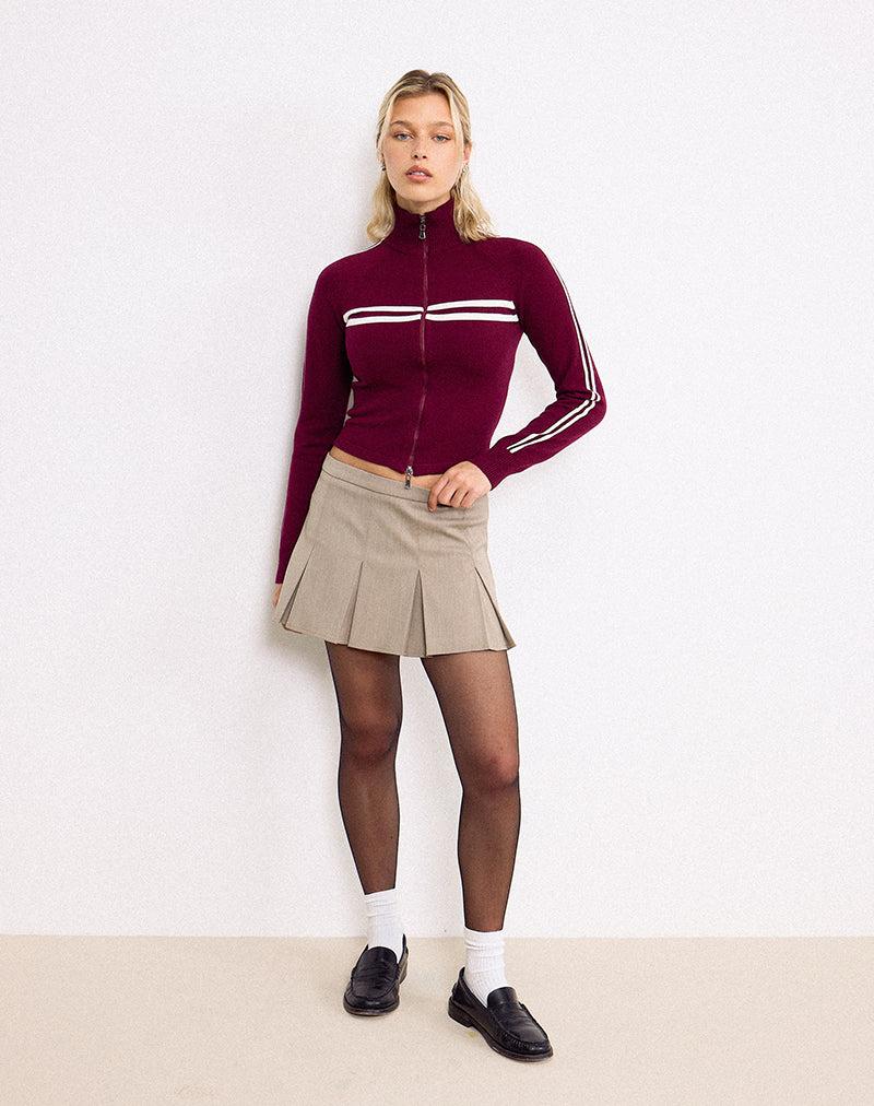 The Ranaso skirt, in a light brown fabric, features a low-rise mini fit with inverted pleated detailing. Complete the look with our Talisa knit jacket. MODEL WEARS SIZE: SMALL - MODEL HEIGHT:5'6