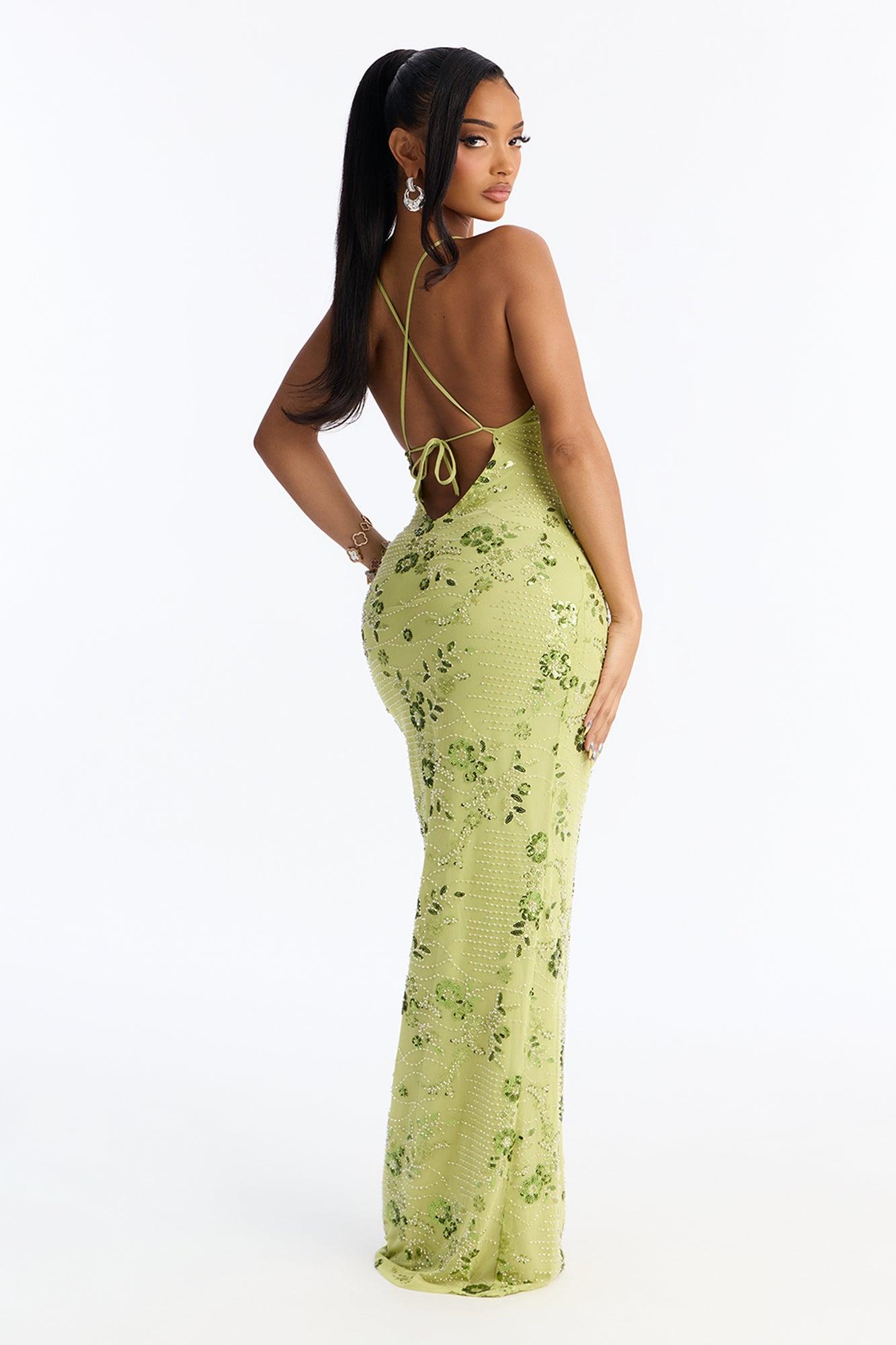 Ronnie Embellished Sequin Gown - Chartreuse Female