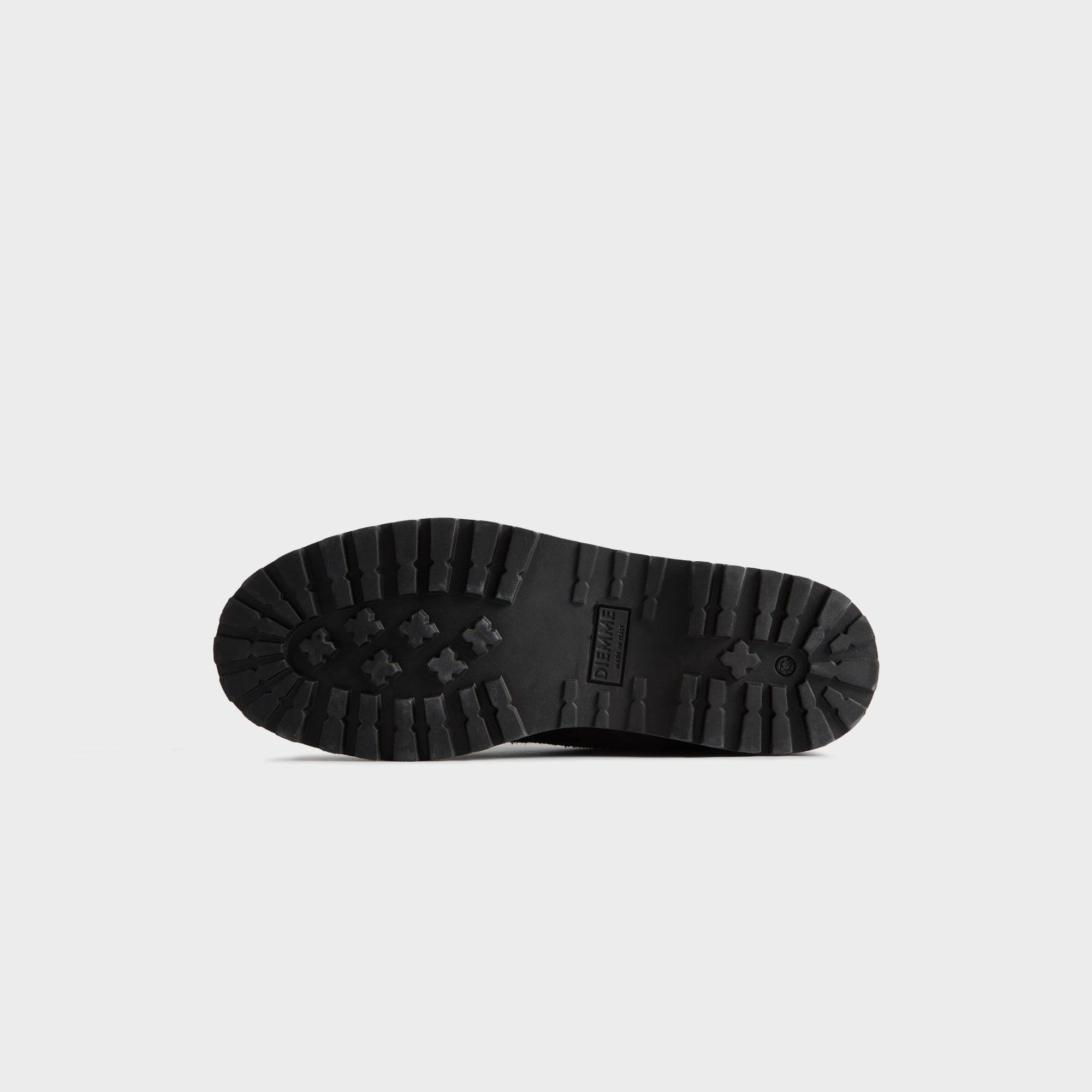 Ronnie Fieg for Diemme Women's Cornaro silhouette Hairy suede upper Ballistic nylon collar Leather lining Rubber toe cap Custom FIEG patch on the tongue Kith debossed on the lateral side Silver eyelets D-ring lacing system Tonal round fleck laces with additional lace options Welted midsole Co-branded sockliner Lightweight lugged outsole Style: didc25fwcow-dkb Color: Espresso Material: Suede / Nylon / Leather