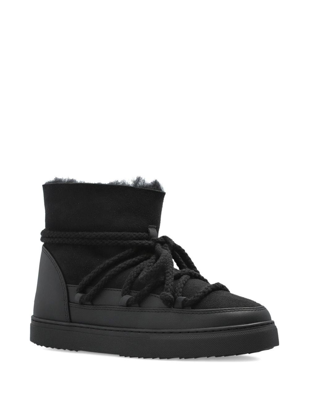 Inuikii rope-laces lined snow boots | Black | black | fur lining | rope laces | flat sole | leather upper | round toe | Lamb Skin/Rubber/Leather | Rain & Snow Boots | Boots | Shoes | Women