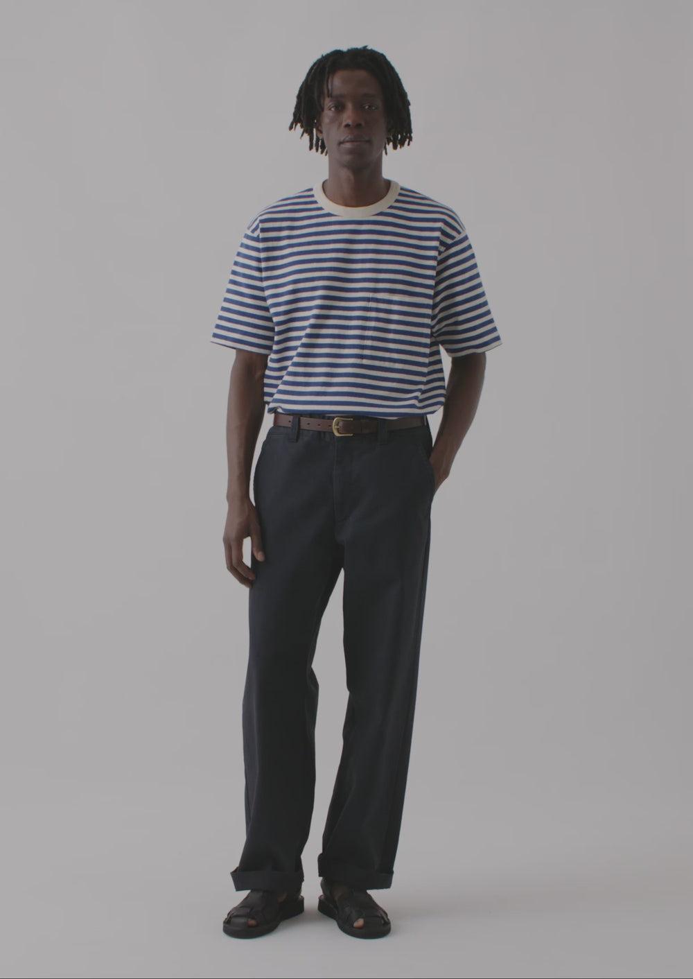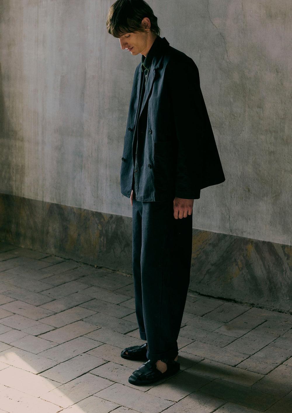 Our Rory pants are made from a structured cotton canvas. Cut with straight legs and accented by slanted side pockets and back patch pockets. Can be worn separately or paired with our Cotton Canvas Double Breasted Jacket. Part of our Menswear collection.