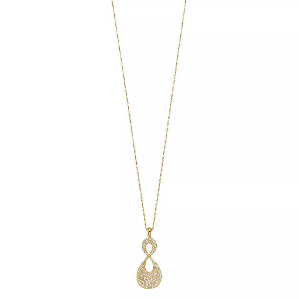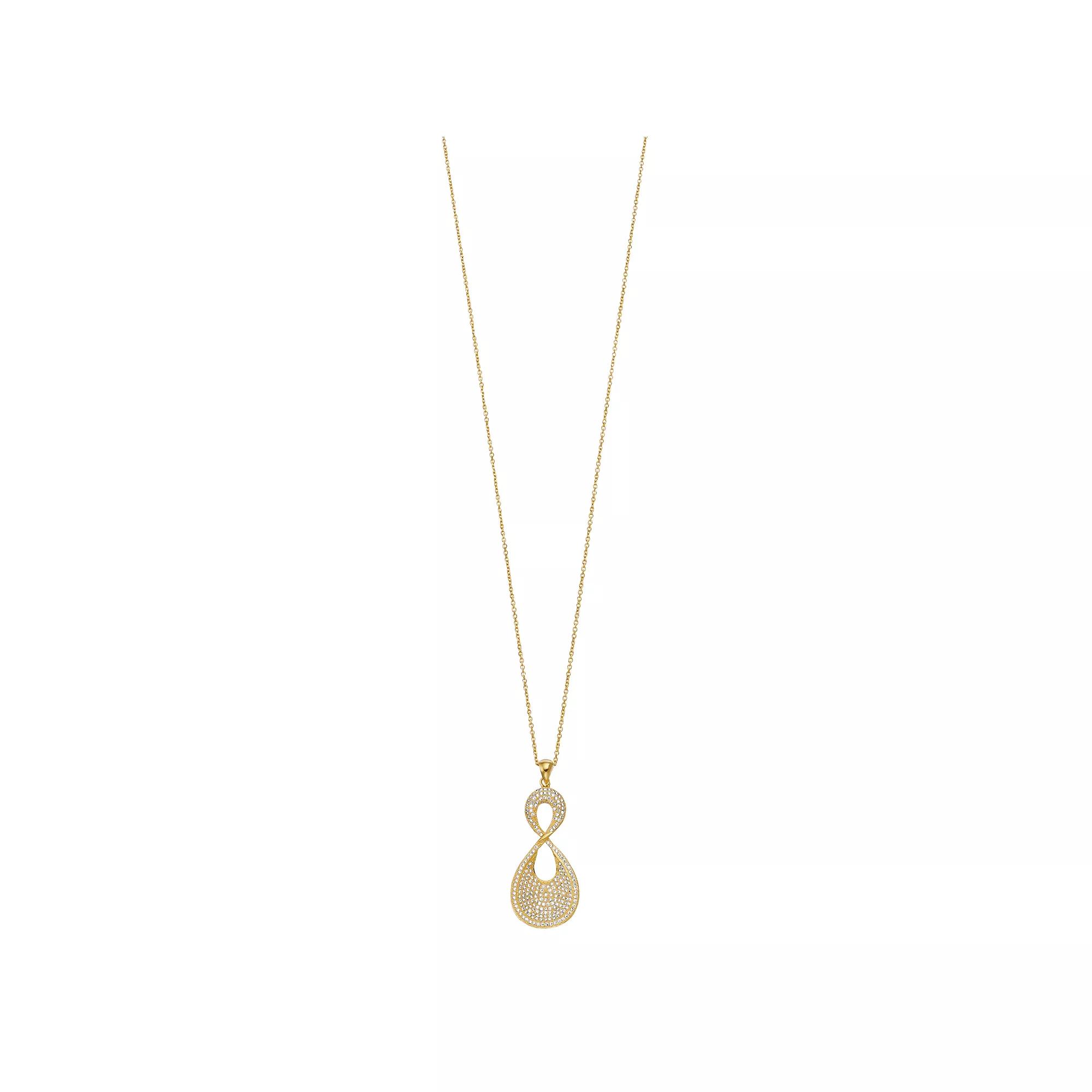 Shimmering with cubic zirconia accents, this Rosabella infinity necklace is sure to garner endless complements. Click on this JEWELRY & WATCHES GUIDE to learn about fit, styles, materials and more! Shimmering with cubic zirconia accents, this Rosabella infinity necklace is sure to garner endless complements. Click on this JEWELRY & WATCHES GUIDE to learn about fit, styles, materials and more! FEATURES Pendant size: 44 mm x 18 mm Chain length: 18 in. Chain type: cable Clasp: spring-ring Nickel free Metal: sterling silver Plating: 14k gold flash plated Finish: polished Packaging: boxedSTONE DETAILS Stone type: cubic zirconia Shape: round Setting: prong Size: 18". Color: Yellow. Gender: female. Age Group: adult.
