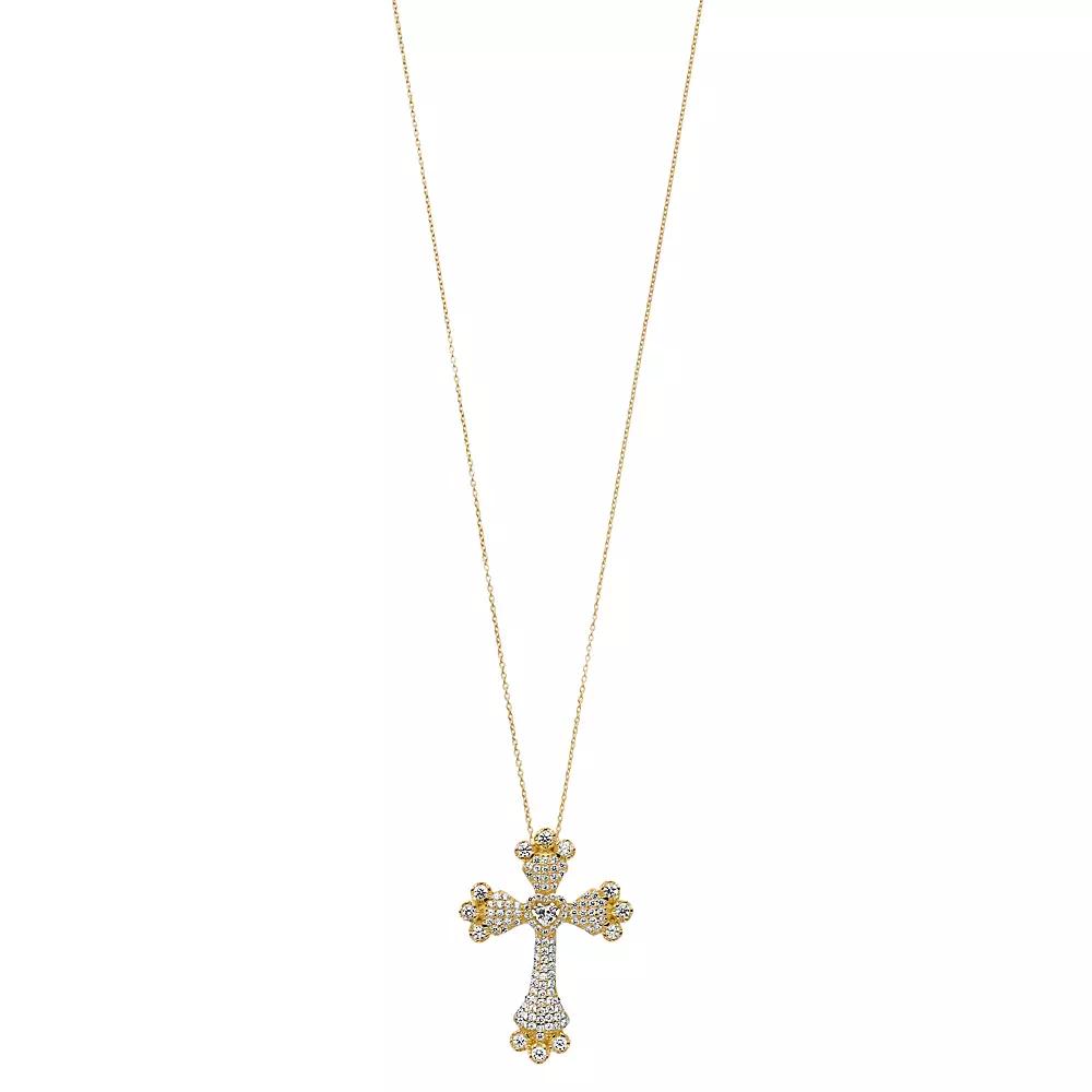 Shimmering with cubic zirconia gemstones, this Rosabella pendant necklace is a beautiful expression of your faith. Click on this JEWELRY & WATCHES GUIDE to learn about fit, styles, materials and more! Shimmering with cubic zirconia gemstones, this Rosabella pendant necklace is a beautiful expression of your faith. Click on this JEWELRY & WATCHES GUIDE to learn about fit, styles, materials and more! FEATURES Pendant size: 1.7"L x 1.3"W Chain length: 18 in. Chain type: cable Clasp: spring-ring Nickel free Metal: sterling silver Plating: 14k gold flash plated Finish: polished Packaging: boxedSTONE DETAILS Stone type: cubic zirconia Shape: heart, round Setting: prong Gemstones may have been treated to enhance their appearance. Special care may be required. Please visit our Gemstone Treatment & Special Care Guide for more information. Size: 18". Color: Yellow. Gender: female. Age Group: adult.