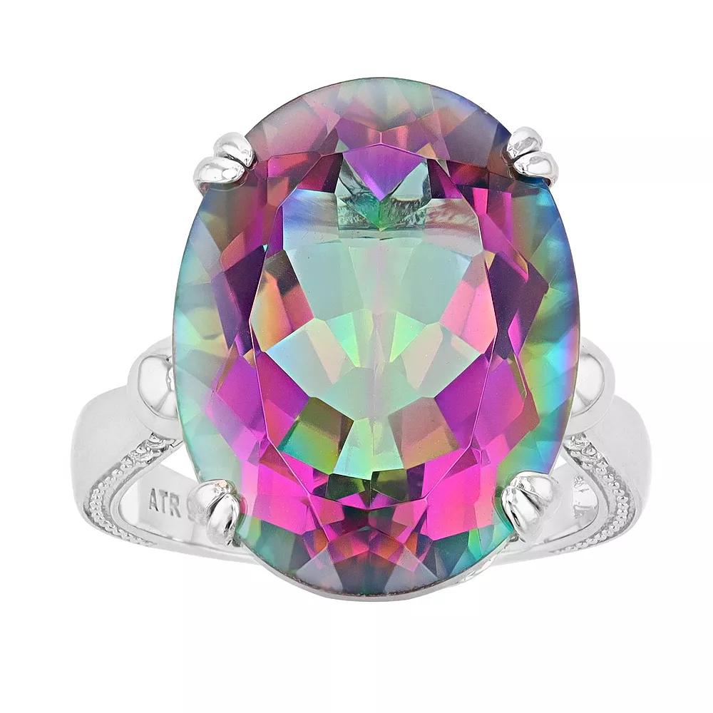 Enhance your favorite outfits with this captivating Rosabella rainbow quartz ring. Enhance your favorite outfits with this captivating Rosabella rainbow quartz ring. Width: 0.86 in. Metal: sterling silver Finish: polishedSTONE DETAILS Stone type: rainbow quartz, white topaz Total weight: 17.33 ct. Center stone size: 20 mm x 15 mm Shape: oval, round Setting: prong Gemstones may have been treated to enhance their appearance. Special care may be required. Please visit our Gemstone Treatment & Special Care Guide for more information. Please note, due to the high value of this item, a signature may be required upon delivery. Color: Purple. Gender: female. Age Group: adult.