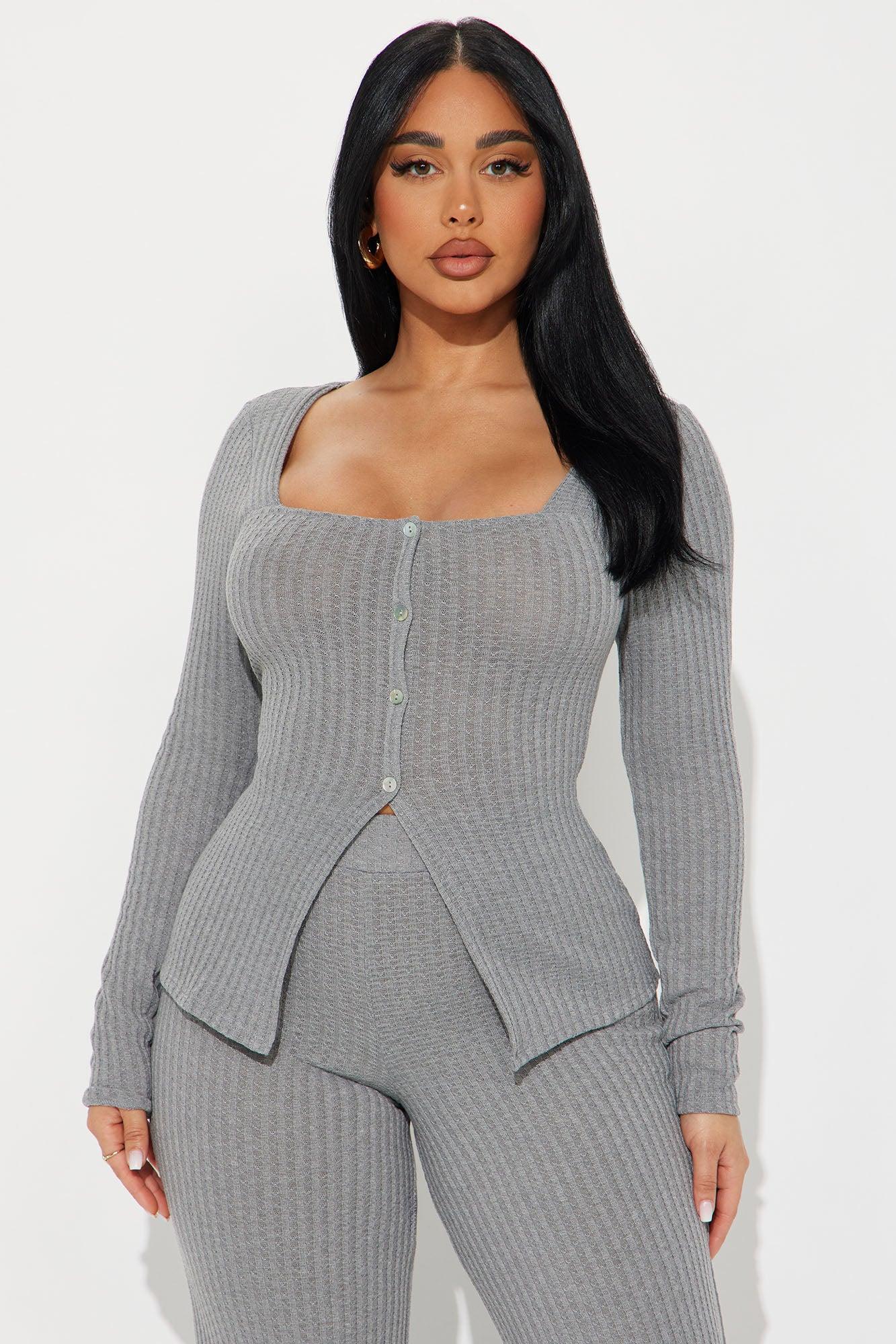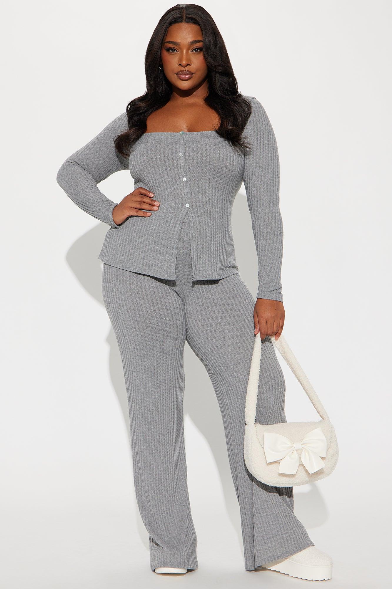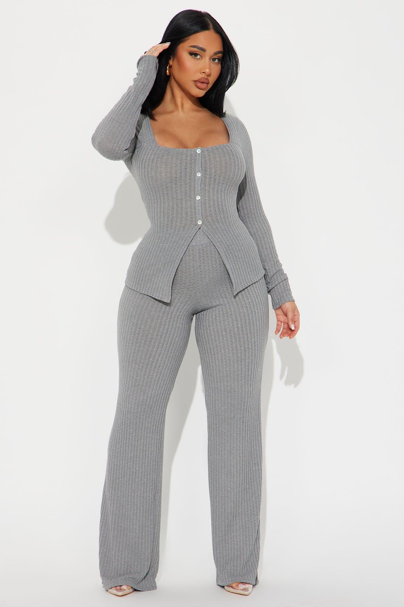 Rosalee Ribbed Pant Set - Grey