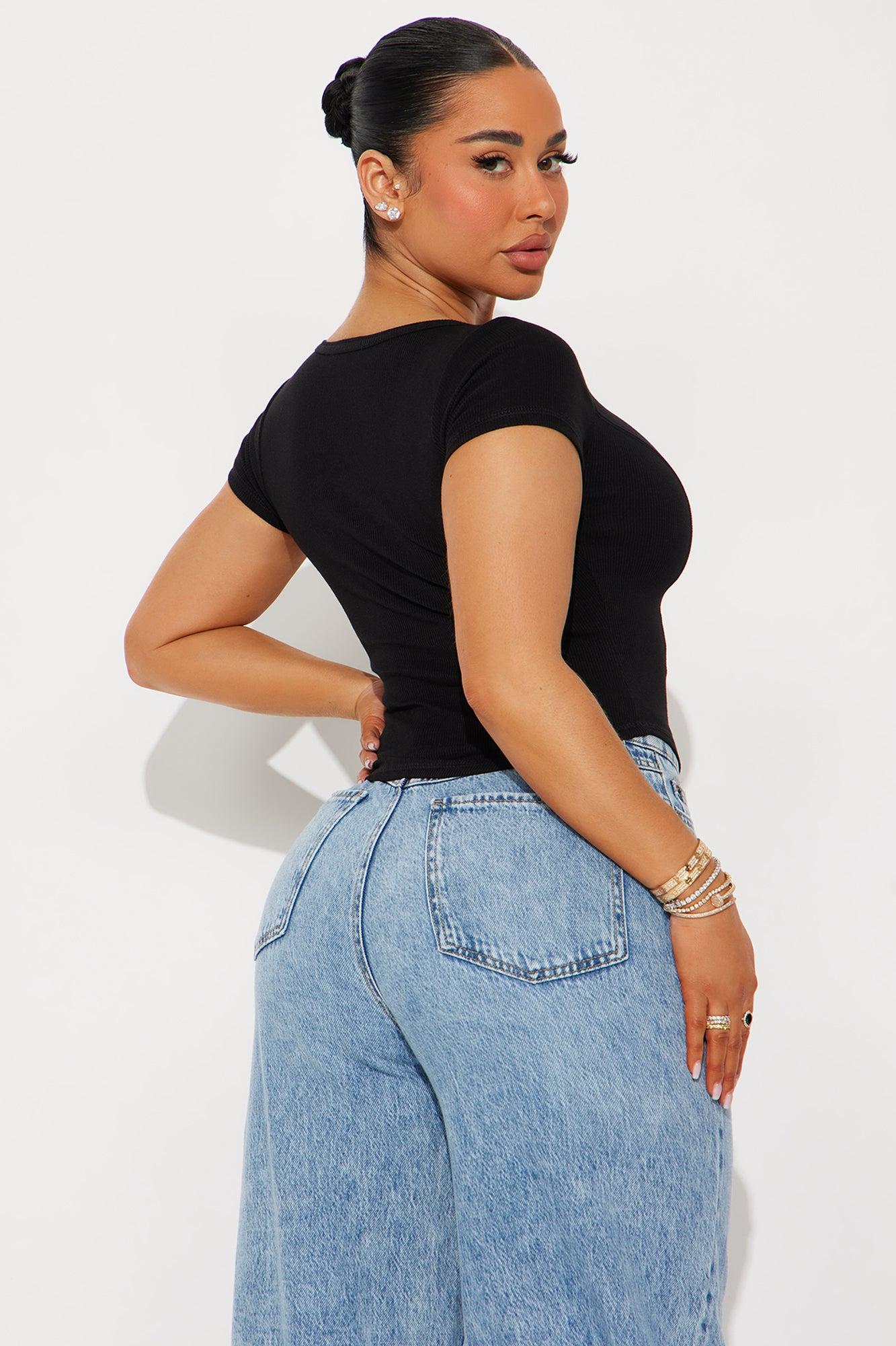 Rosalie Ribbed Short Sleeve Top - Black