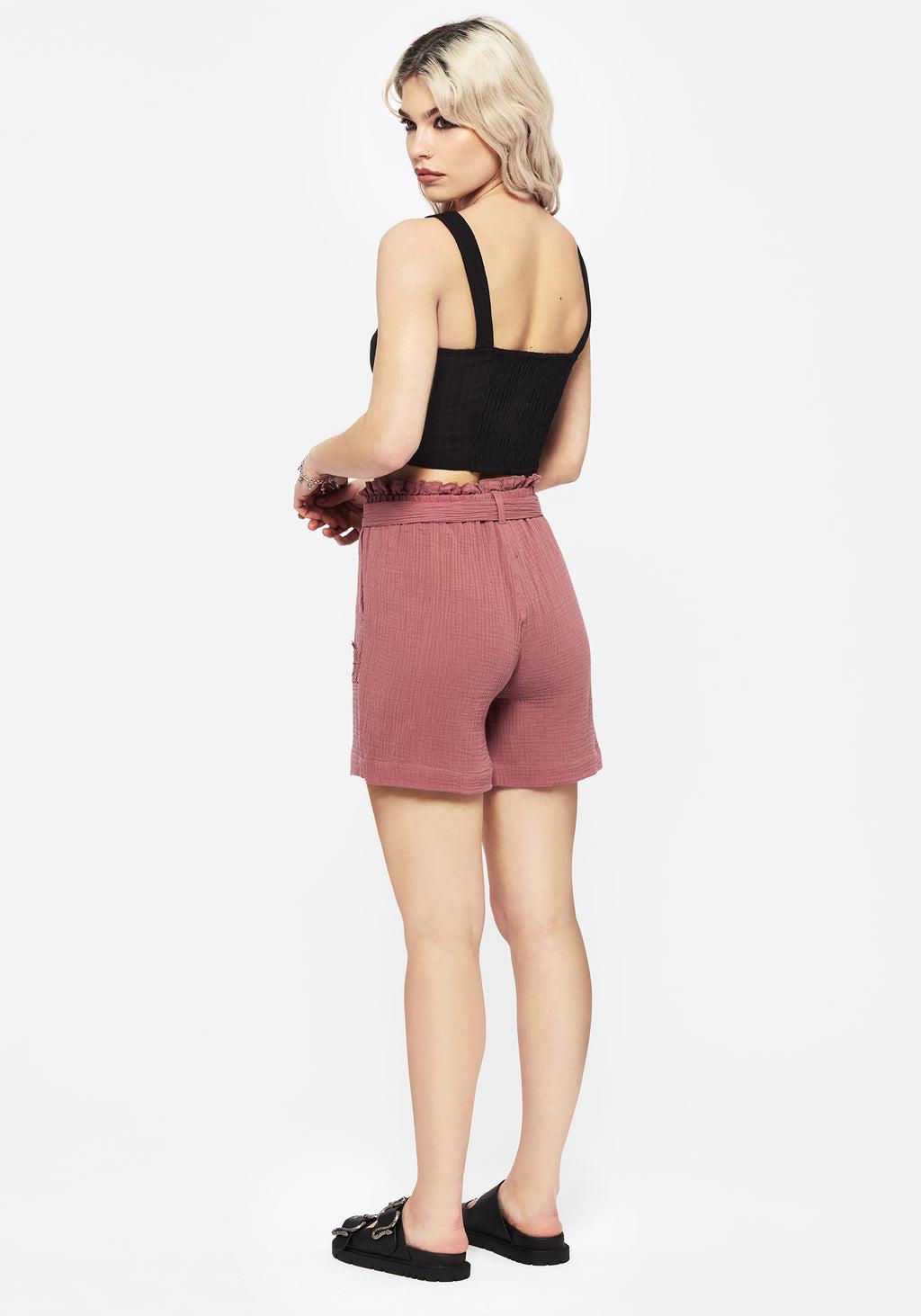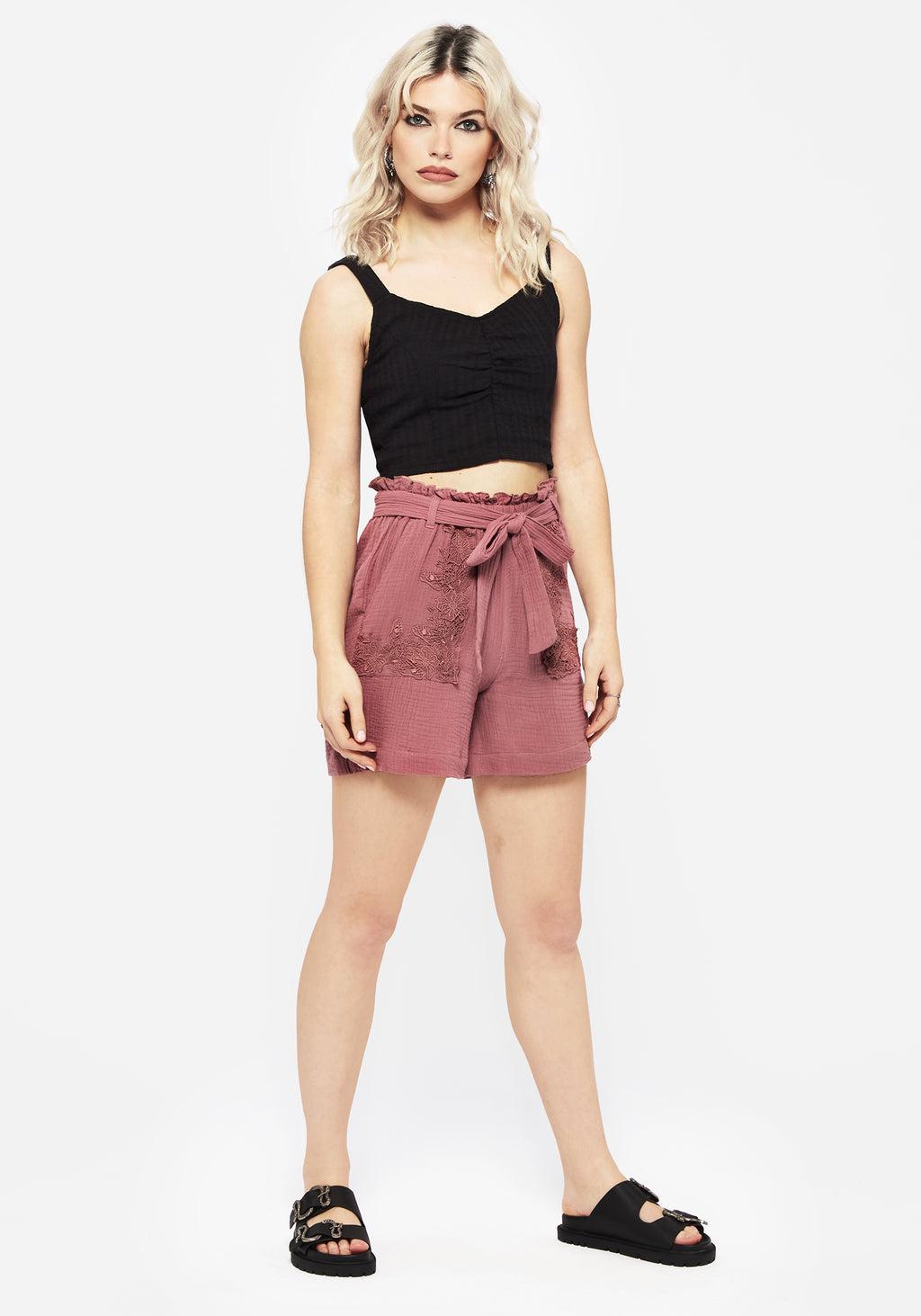 Rosamoth Applique Trim Cotton Tie Waist Shorts