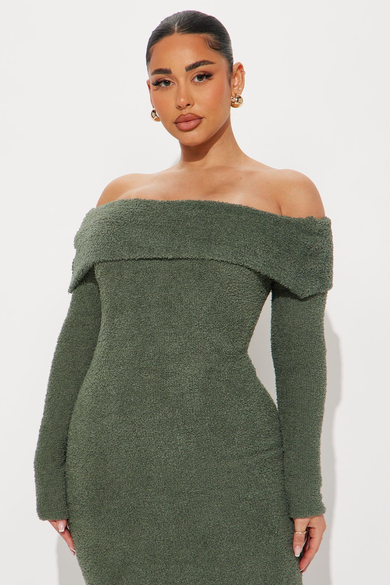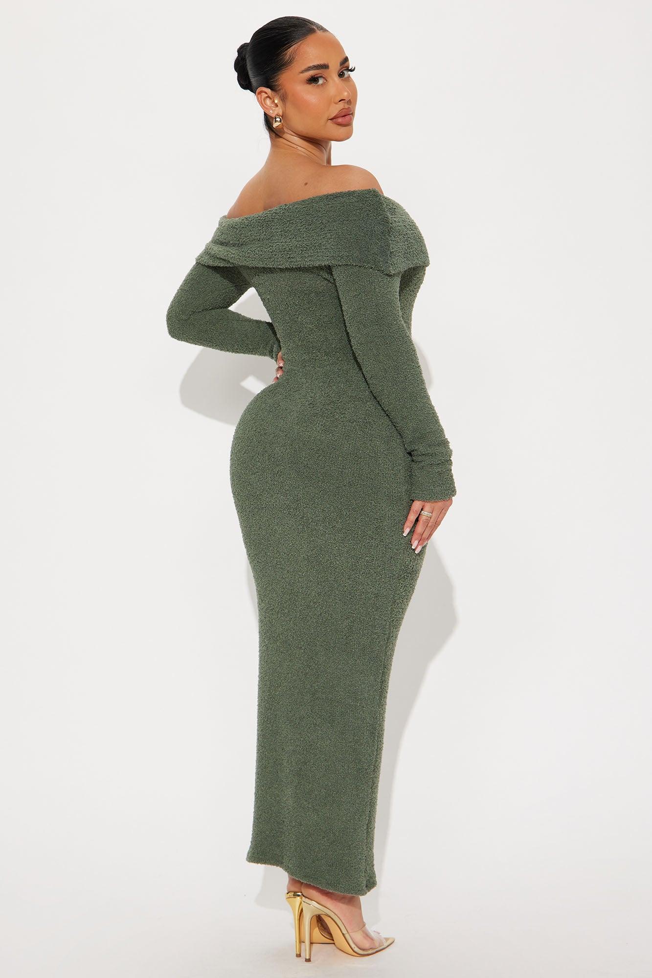 Rosana Cozy Off Shoulder Maxi Dress - Green
