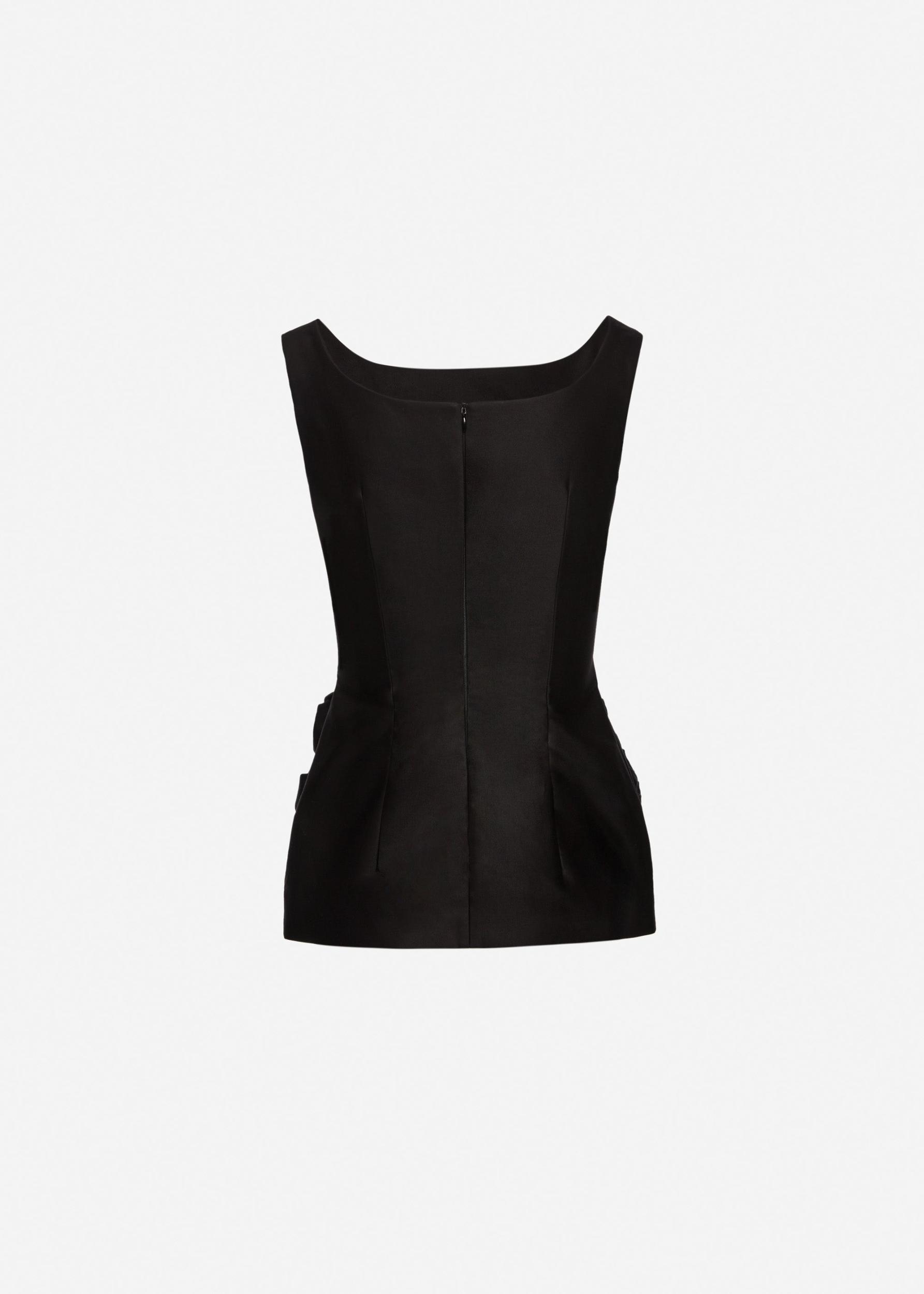 A structured cotton sheath top with a longline length and hourglass shape, hugging the waist and flaring out at the hips. Rose appliqué bunches adorn the hips for a signature Magda Butrym touch, finished with a sleeveless cut and round neck.