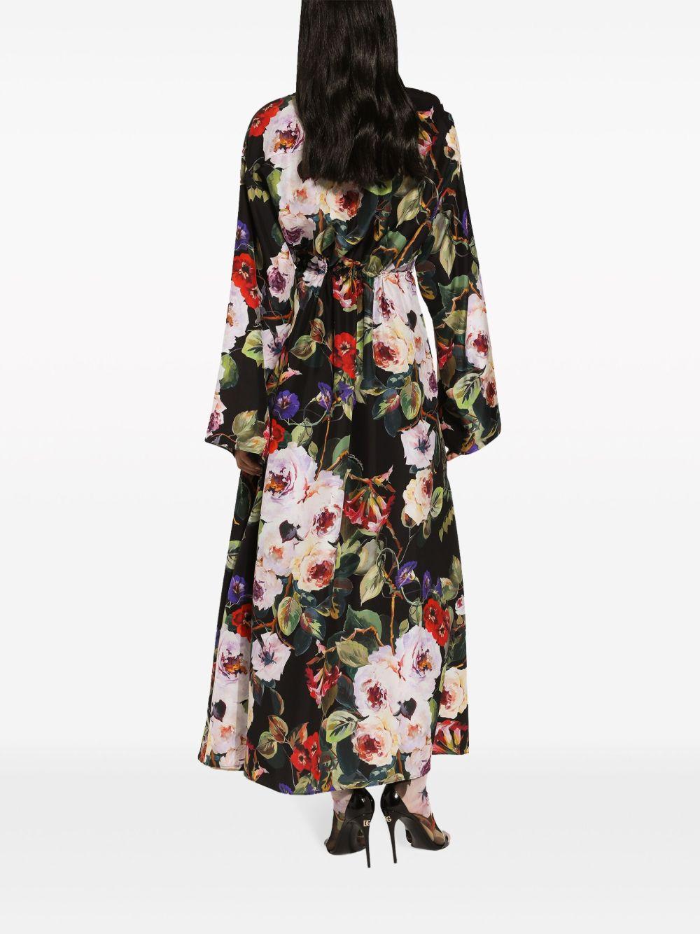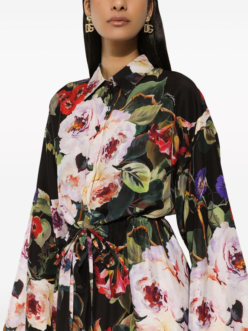 Rose-print silk shirtdress