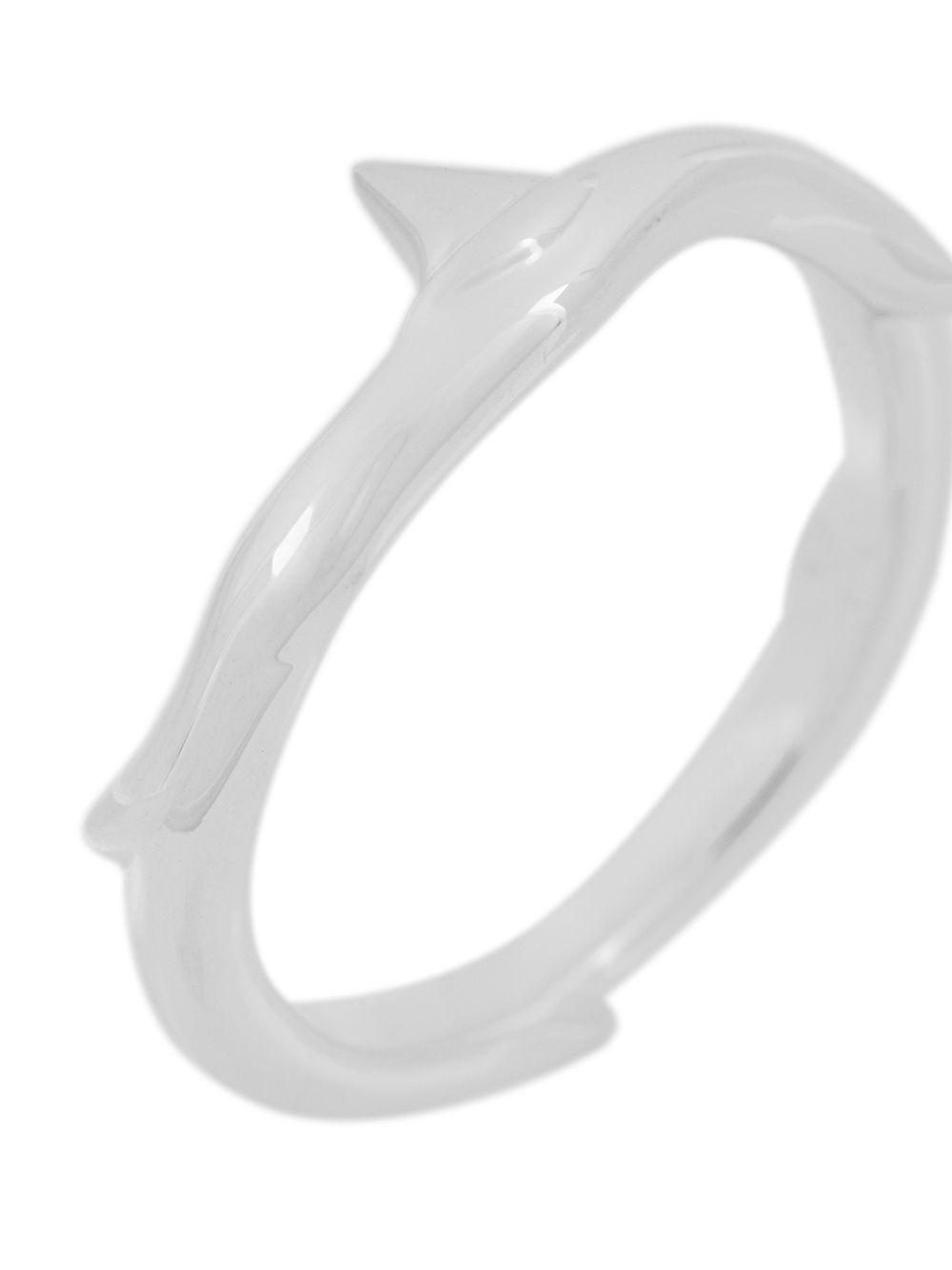 Shaun Leane Rose Thorn ring | Metallic | Shaun Leane’s Rose Thorn collection is alluring and sculpturally simplistic with pieces evolving organically that fluidly embrace the body with a splendid armour. From a single thorn earring through to the statement cuff, the graceful menacing beauty of the rose thorn is dangerously charming. This silver band ring from Shaun Leane features spiked rose thorns. | Silver | Rings | Jewelry | Women