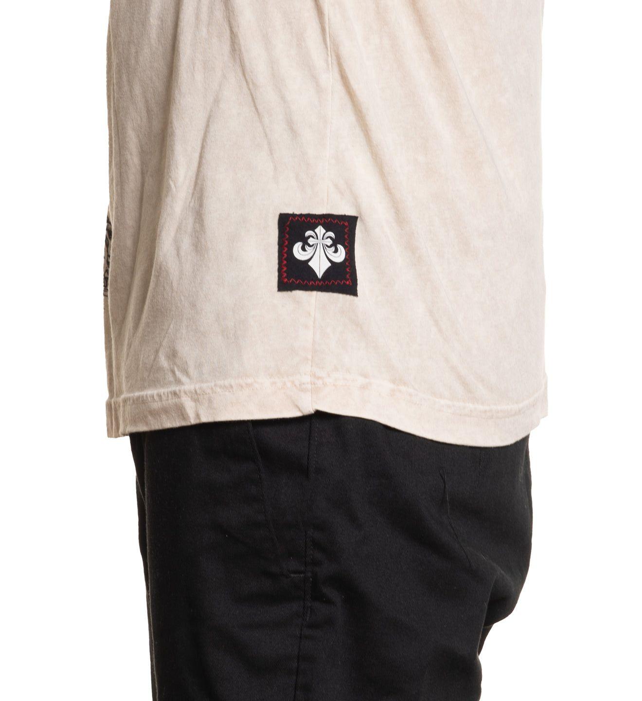 Roses For The Dead Short Sleeve Tee Sand Lava Wash 50% Cotton / 50% Polyester Enzyme Silicone Softener Grinding On Collar, Bottom Hem, & Sleeves Black Edge Jersey Patch Each Piece Uniquely Numbered Limited Edition