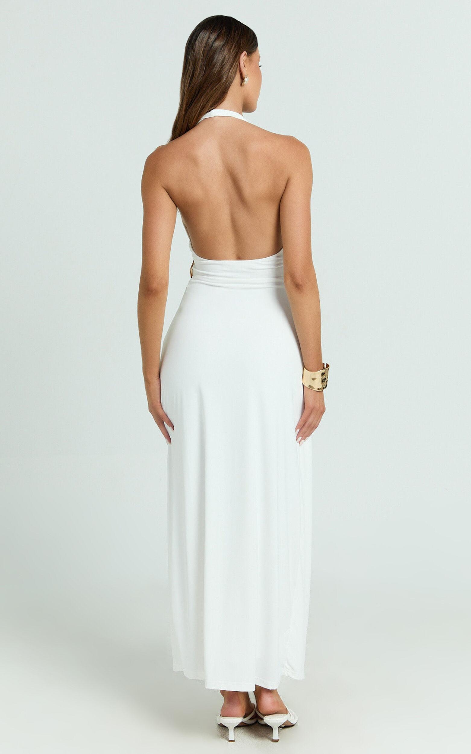 Roseville Maxi - Wrap Front Halter Dress with Hardware Detail in White