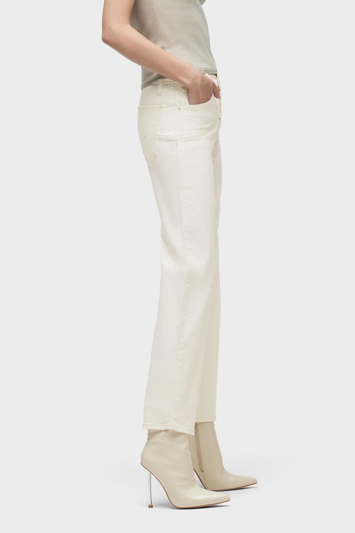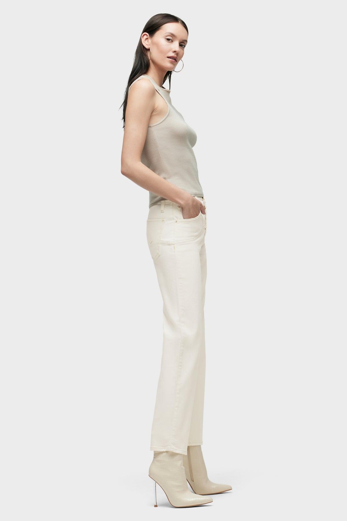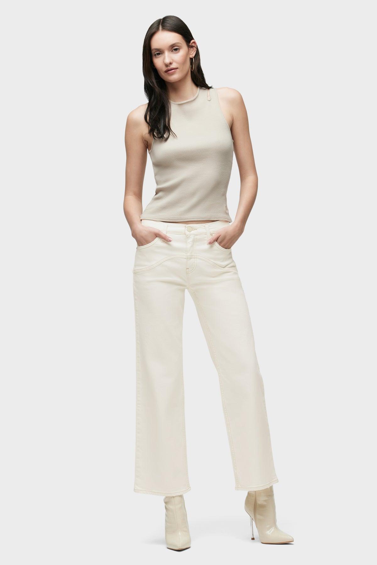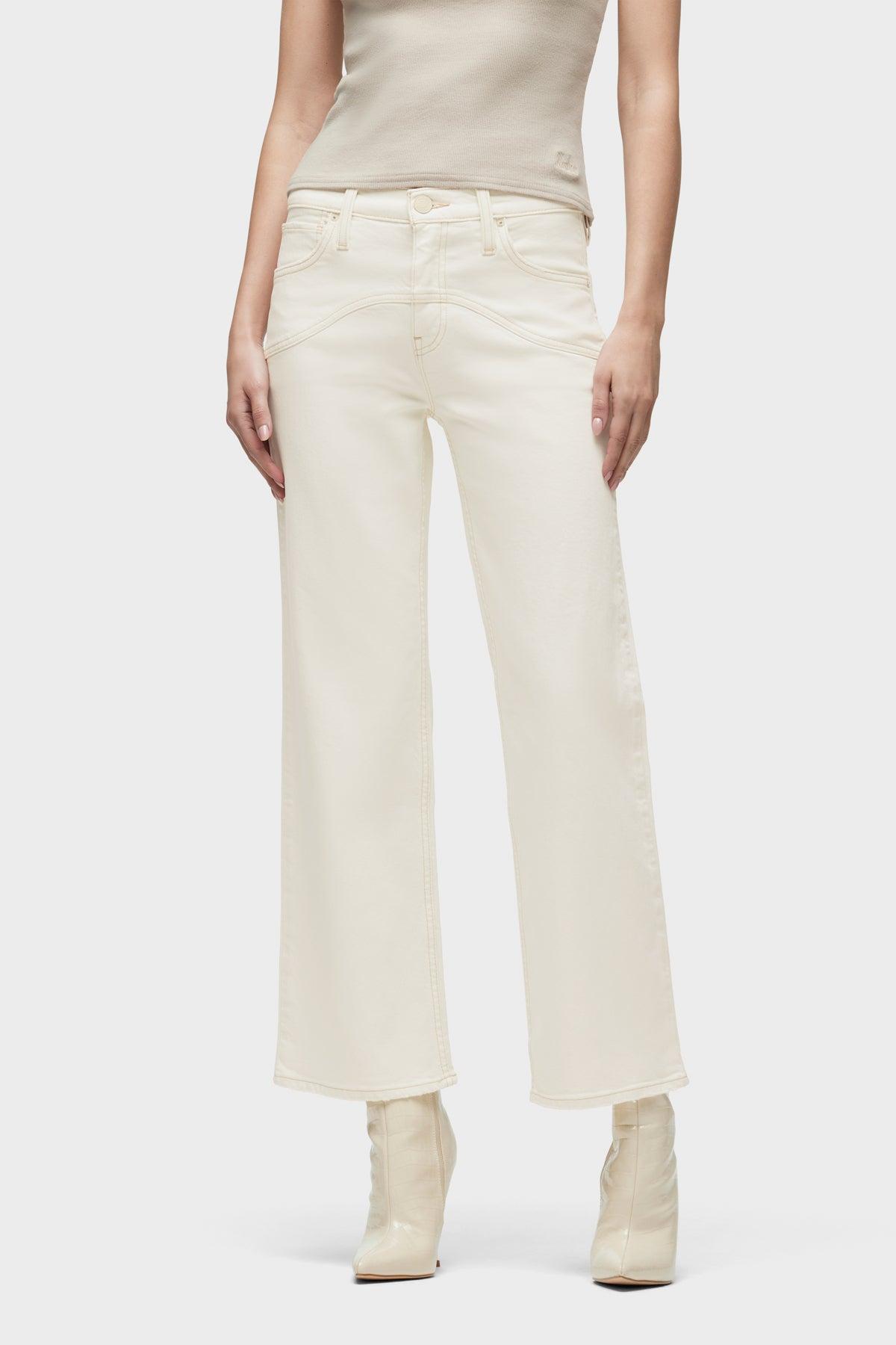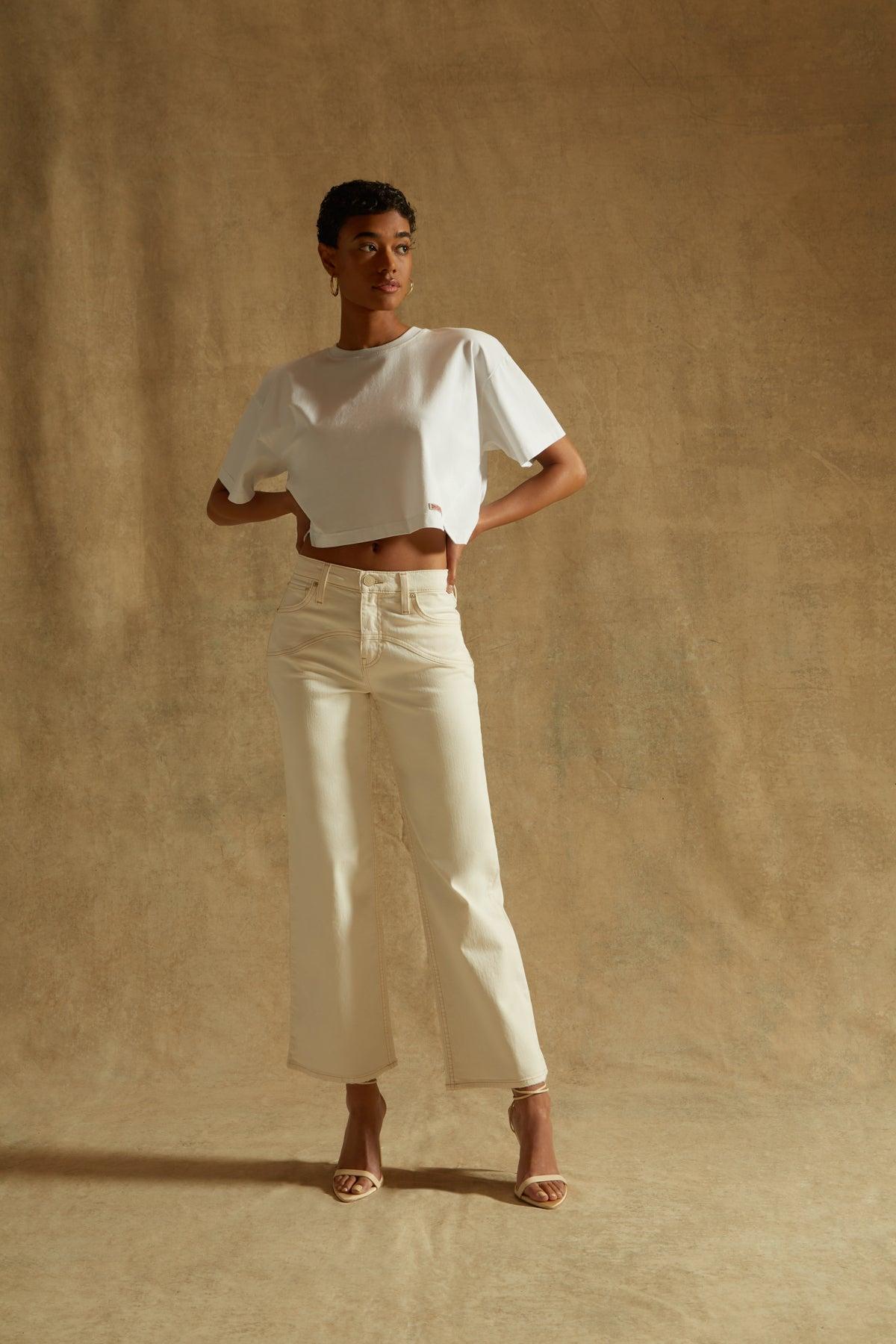 Description Re-up with our Rosie High-Rise Front Yoke Wide Leg Ankle Jean, cut with an elevated waistline and ankle-length, roomy leg. Crafted from premium comfort stretch denim in overdyed Ecru with front and back yoke detailing, subtle contrast topstitching and a raw hem. Product Details Front Rise: 10.25", Leg Opening: 20", Inseam: 28"Model wearing size 25Measurements based on size 27 Fit & Care Content: 63% Cotton, 35% Lyocell, 2% ElastaneMachine wash cold with like colorsDo not bleachTumble dry low or hang to dry