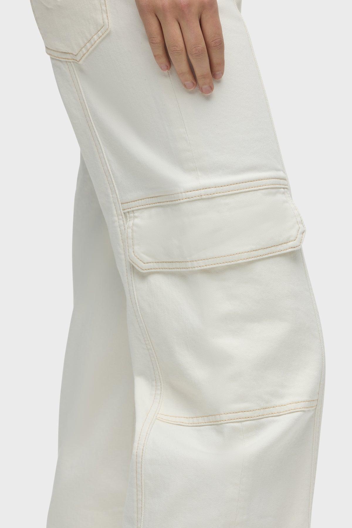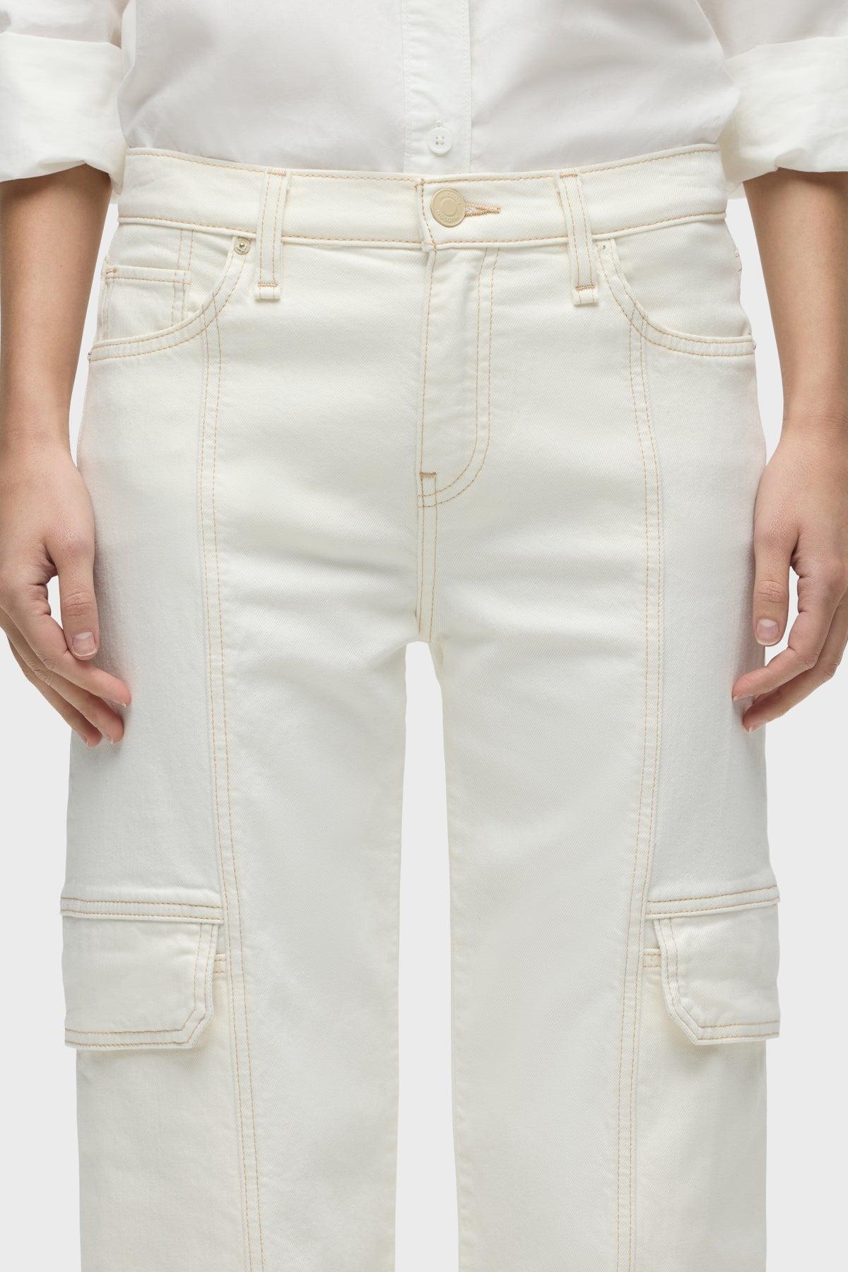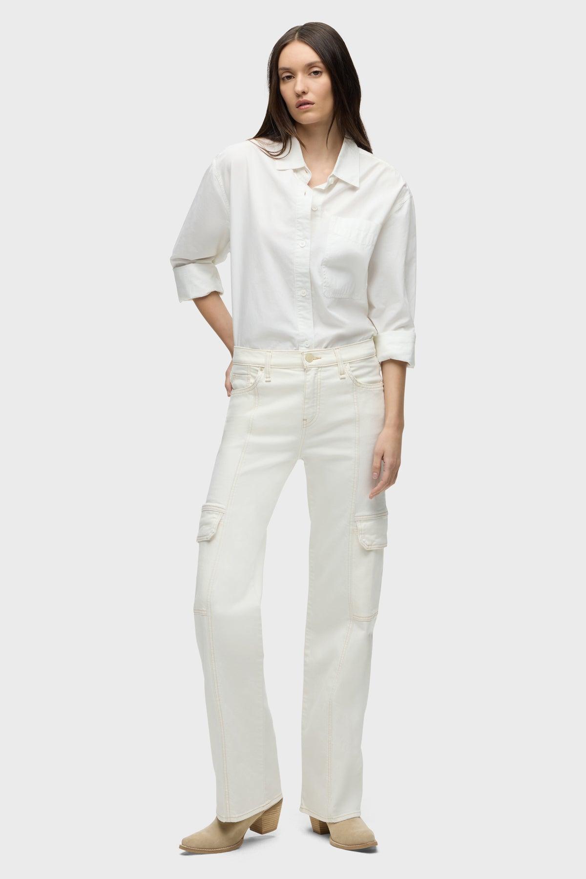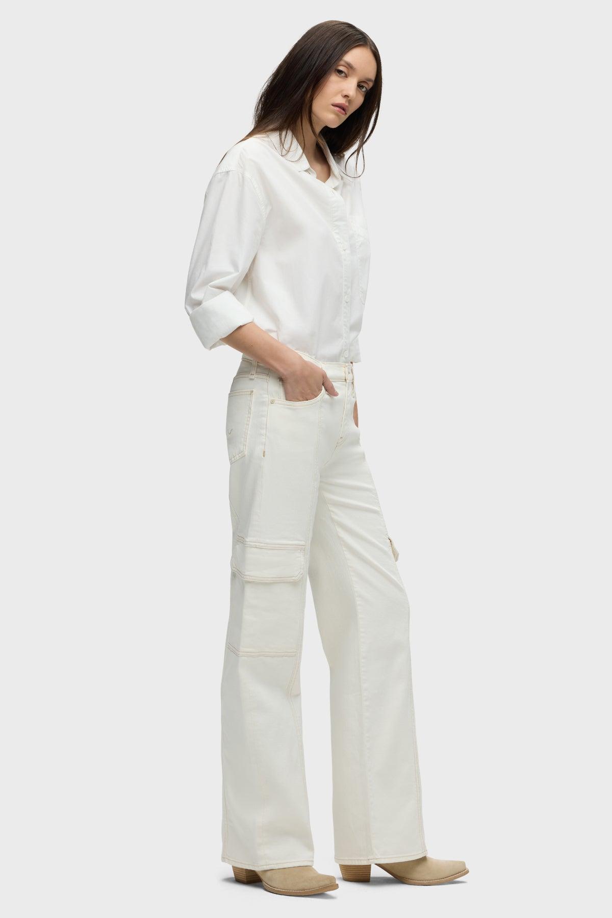 Description Our Rosie High-Rise Seamed Cargo Jean is cut with a high rise, utility cargo detail and wide leg. Crafted from premium comfort stretch denim in a seasonal Ecru wash. Product Details Front Rise: 10.25", Leg Opening: 20", Inseam: 32"Model Height 5'9"Model wearing size 25Measurements based on size 27 Fit & Care Content: 63% Cotton, 35% Lyocell, 2% ElastaneMachine wash cold with like colorsDo not bleachTumble dry low or hang to dry