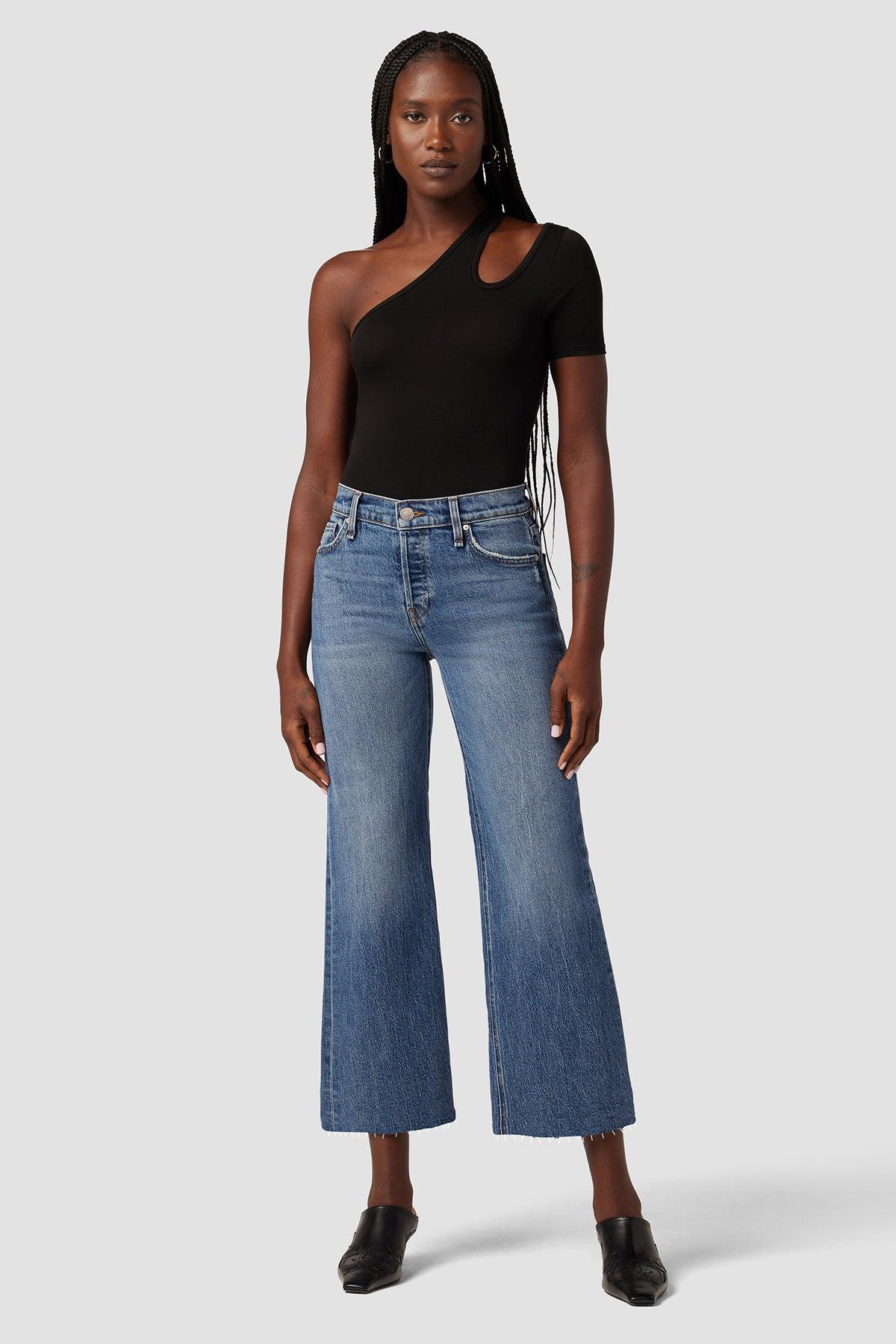 Description Re-up with our Rosie High-Rise Wide Leg Crop Jean, cut with an elevated waistline and cropped, roomy leg. Crafted from premium comfort stretch denim that's been expertly washed down to a medium indigo with whiskering and a raw hem. Product Details Front Rise: 10.25", Leg Opening: 20", Inseam: 27"Model wearing size 25Measurements based on size 27 Fit & Care Content: 76% Cotton, 23% Lyocell, 1% ElastaneMachine wash cold with like colorsDo not bleachTumble dry low or hang to dry