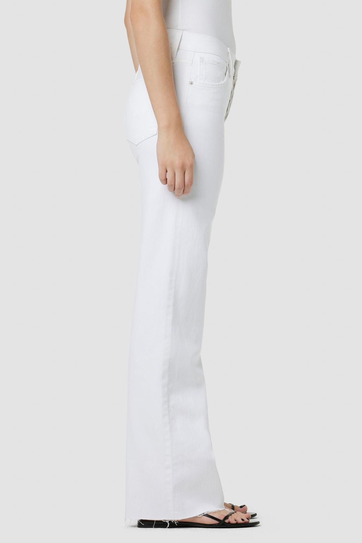 Description Re-up with our Rosie High-Rise Wide Leg Jean, cut with an elevated waistline and roomy leg. Crafted from premium comfort stretch denim, the White Lily wash features a covered button fly, raw hems and five-pocket details. Product Details Front Rise: 10.25", Leg Opening: 20", Inseam: 32"Model Height 5'9"Model wearing size 25Measurements based on size 27 Fit & Care Content: 63% Cotton, 35% Lyocell, 2% ElastaneMachine wash cold with like colorsDo not bleachTumble dry low or hang to dry