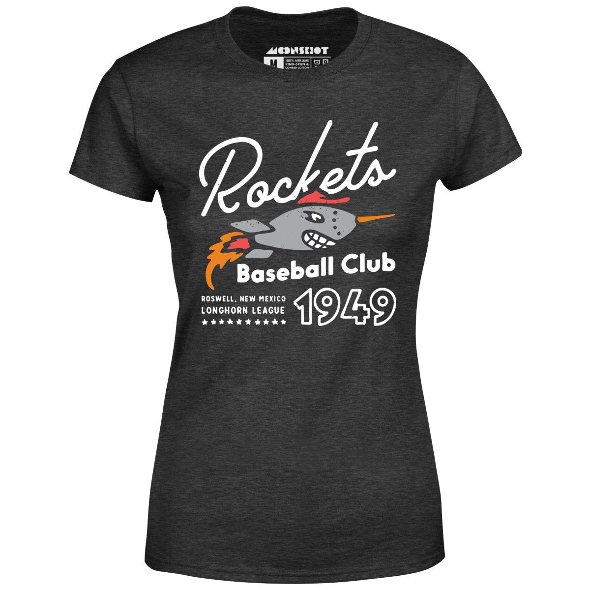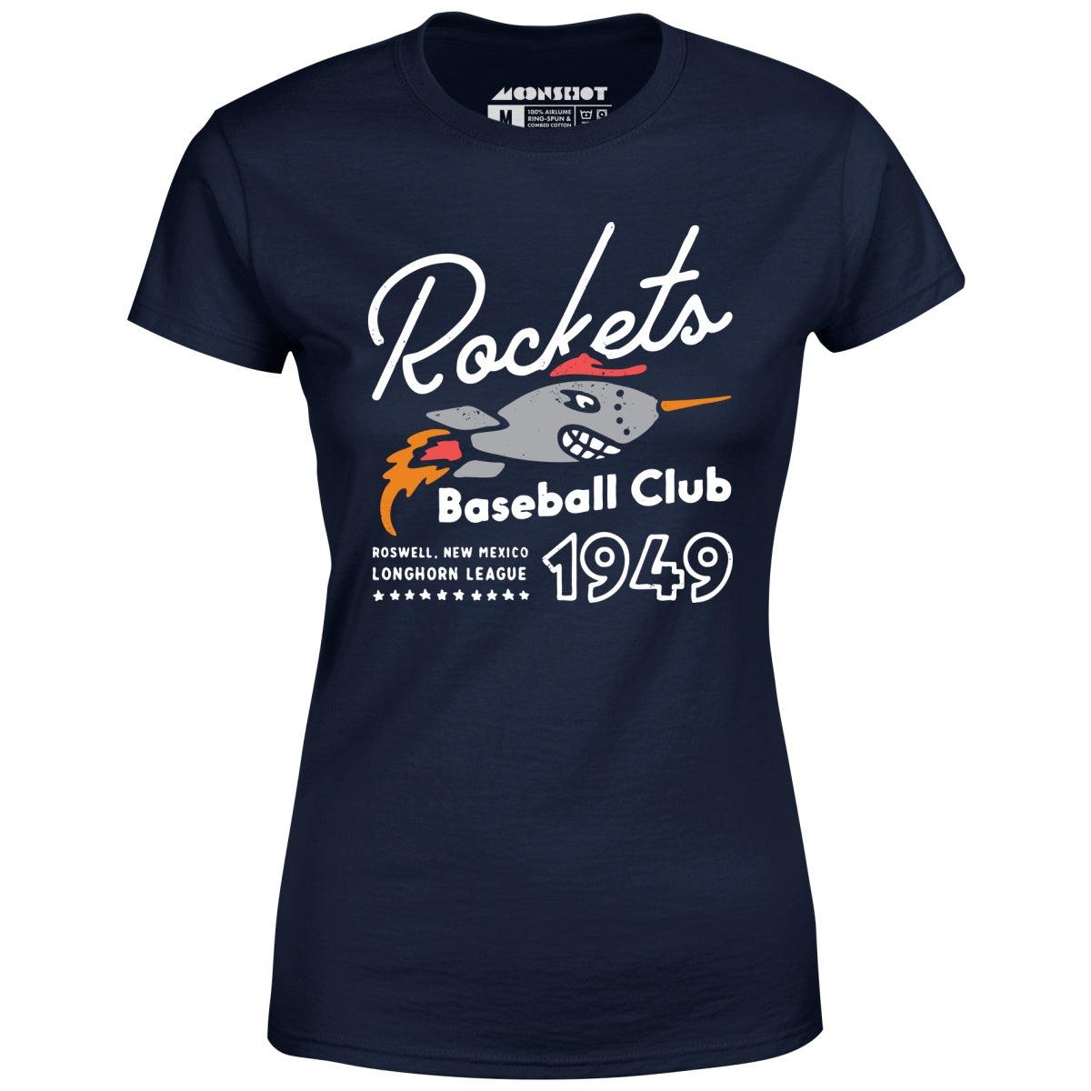 The Roswell Rockets took flight in 1949 as part of the Longhorn League, bringing professional baseball to the heart of Roswell, New Mexico, during the golden age of small town ball. Known for their lively play and loyal local following, the Rockets entertained fans at Fair Park Stadium for a single memorable season before disappearing from the league’s lineup. This design is part of our retro baseball collection, inspired by the defunct baseball teams of yesteryear. Printed on our super soft 100% ringspun & combed cotton women's T-Shirt. Or upgrade to our Luxury 52/48 cotton/poly vintage heather edition for an even softer classic look. We print & ship all of our high quality graphic tees in the USA.