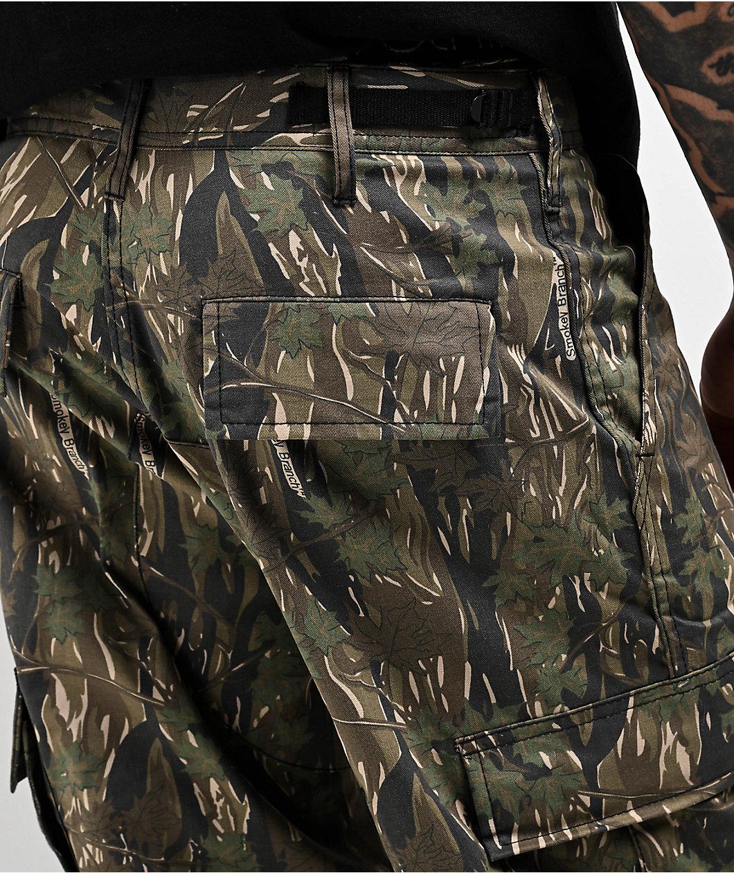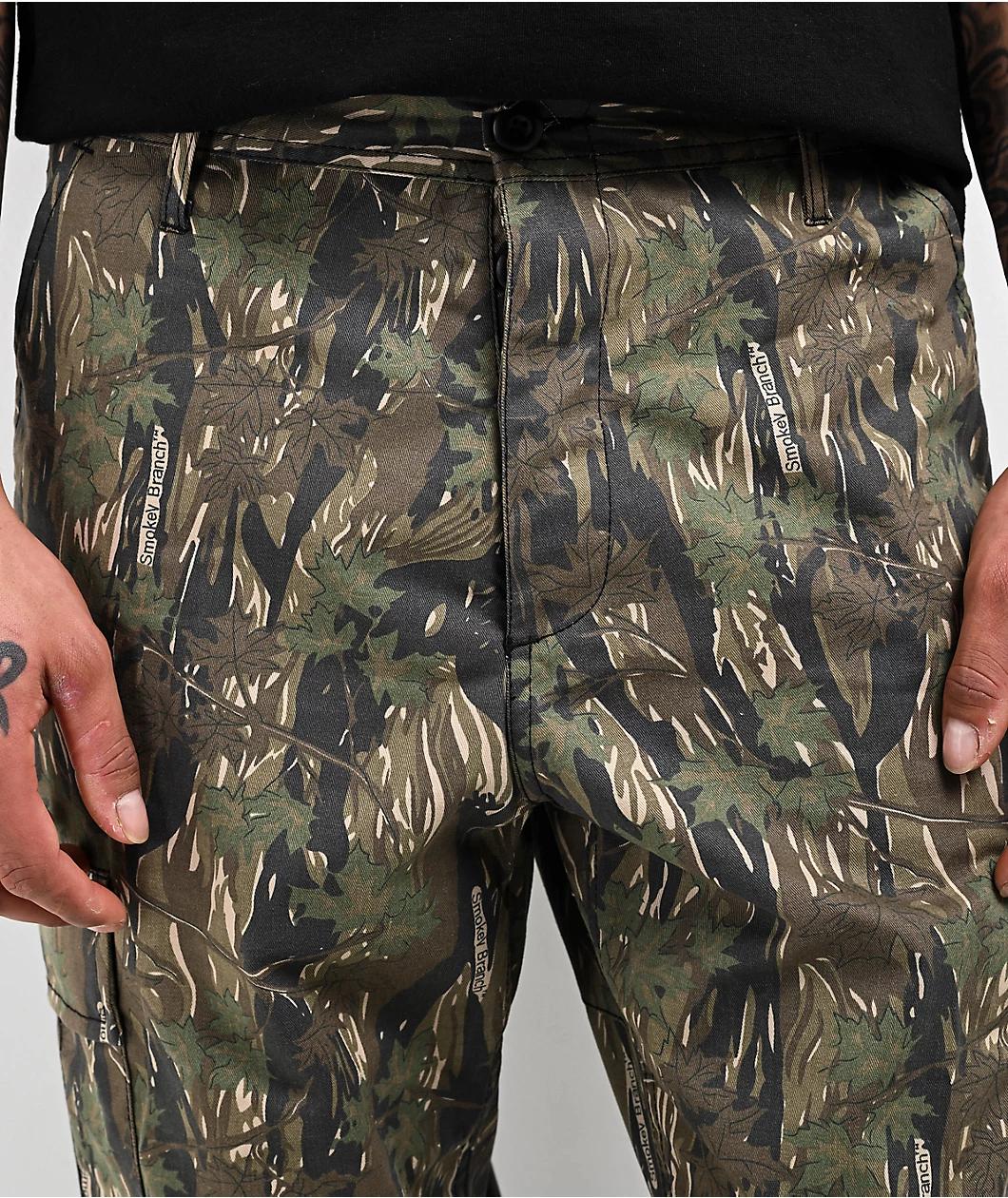 Rothco's signature BDU cargo pants receive a woodland aesthetic, featuring a "Smokey Branch" camouflage pattern throughout. The reimagined military fatigues have a relaxed straight leg silhouette, and have adjustable waist tabs to achieve a custom fi