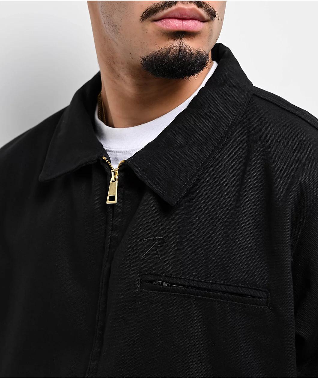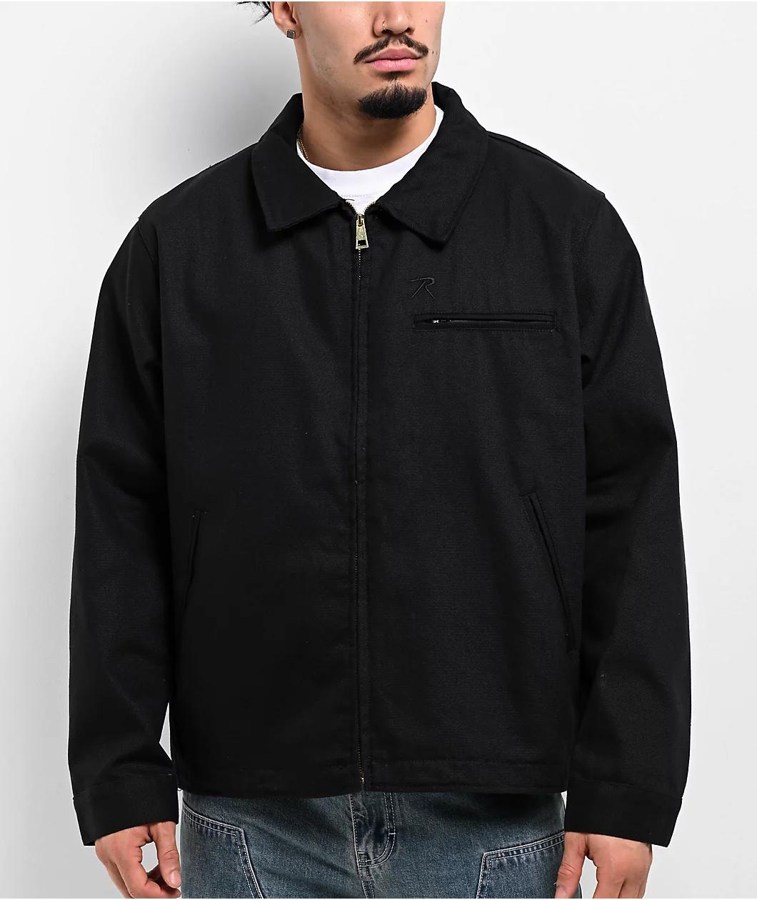Adopt a classic look with the light canvas work jacket from Rothco in a timeless black colorway. With button adjustable sleeves and a turndown collar, the coat takes inspiration from vintage workwear styles, while monochrome brand embroidery on the l