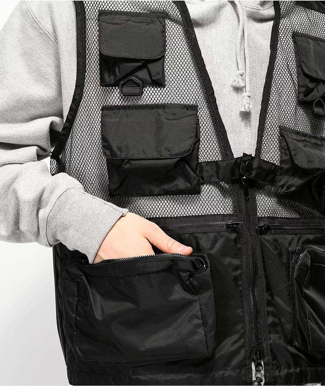 Store all your daily needs in army fatigue inspired style with the Rothco Recon Black Vest. This mostly mesh construction features a total of nine pockets at the front in a myriad of sizes and closure options, while the back has two large pockets located