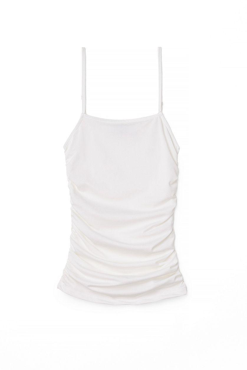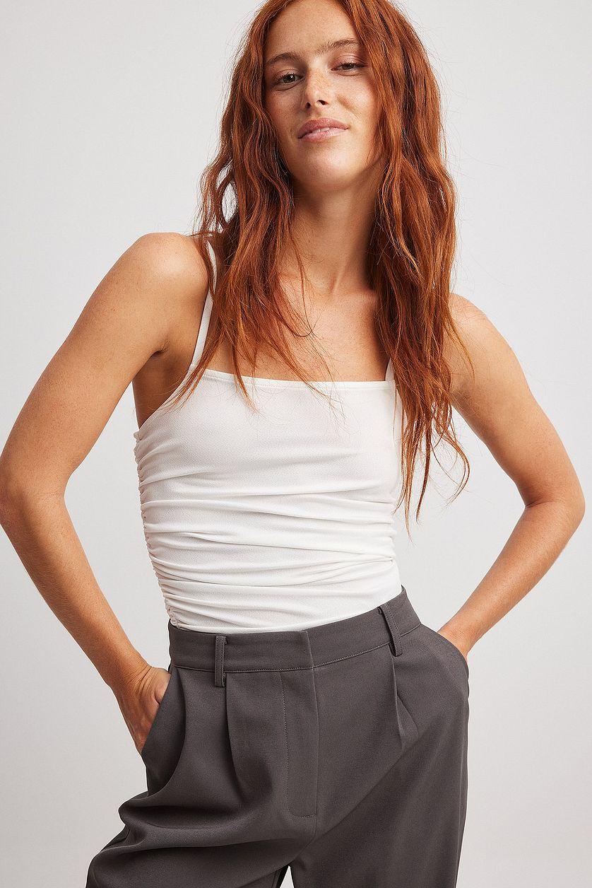 This singlet features a stretchy material and thin, adjustable shoulder straps. It has rouched details on the sides.