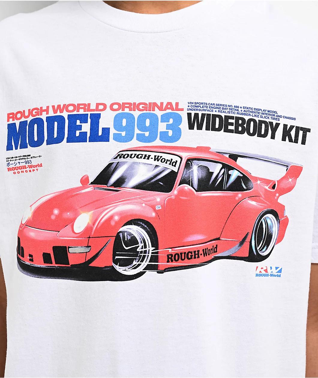 With a cult following since the 90s, Rough World welcomes the Model Kit t-shirt in a clean white colorway. Boasting a vintage-inspired graphic of a European sports car with a widebody kit complemented with Rough World Original branding throughout. De