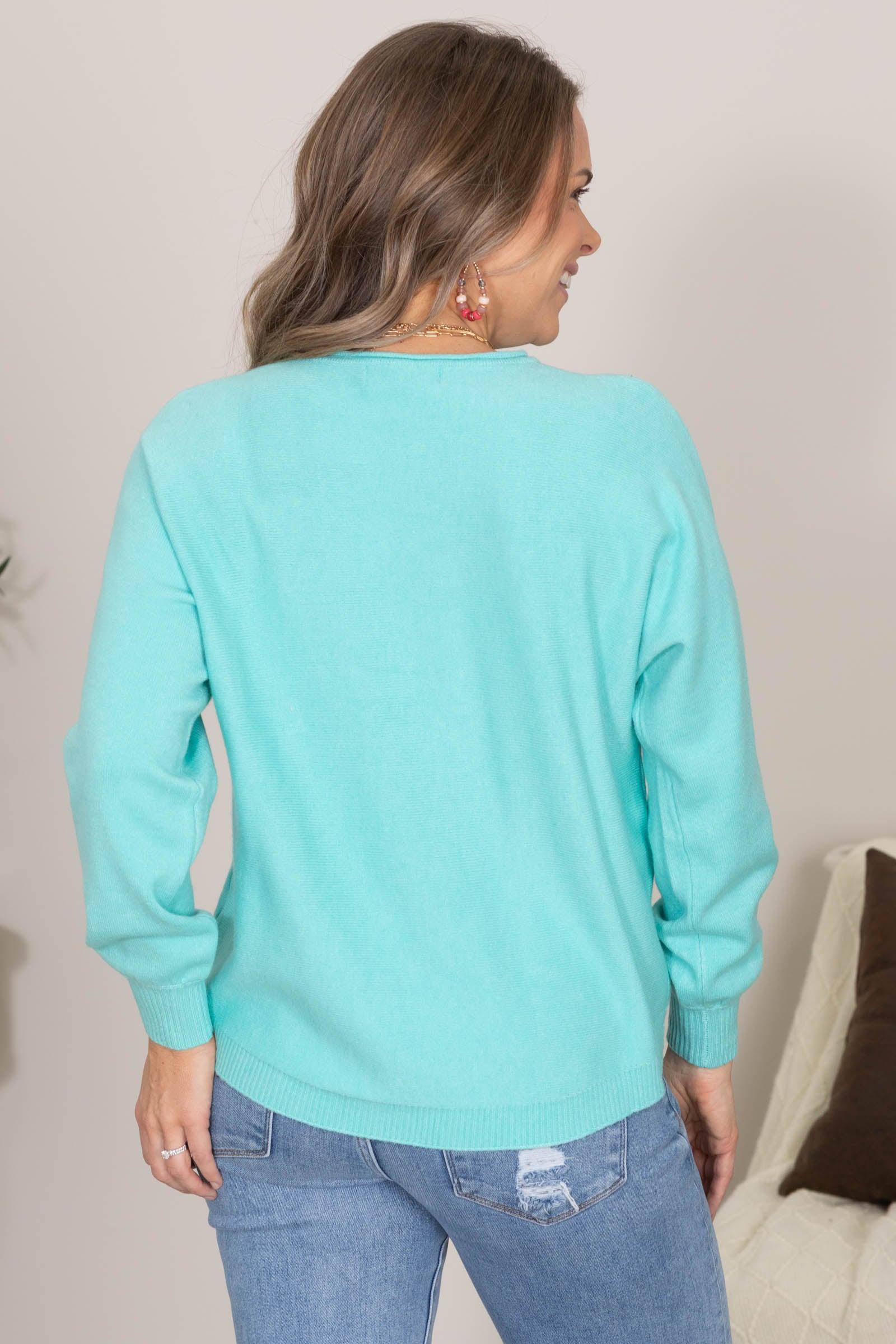 Product Details Colors: Mint/ Light Pink Print: Solid Neckline: Round Sleeve: Long Sleeve Hemline: Straight Brand: Zenana Material and Care 50% Viscose 28% Nylon 22% Polyester Hand Wash Cold Hang/Line Dry Size and Fit Small: Bust 48" Waist 48" Length 24" Medium: Bust 50 " Waist 50" Length 24.5" Large: Bust 52" Waist 52" Length 25" Photo model is 5'7 and wearing a size small