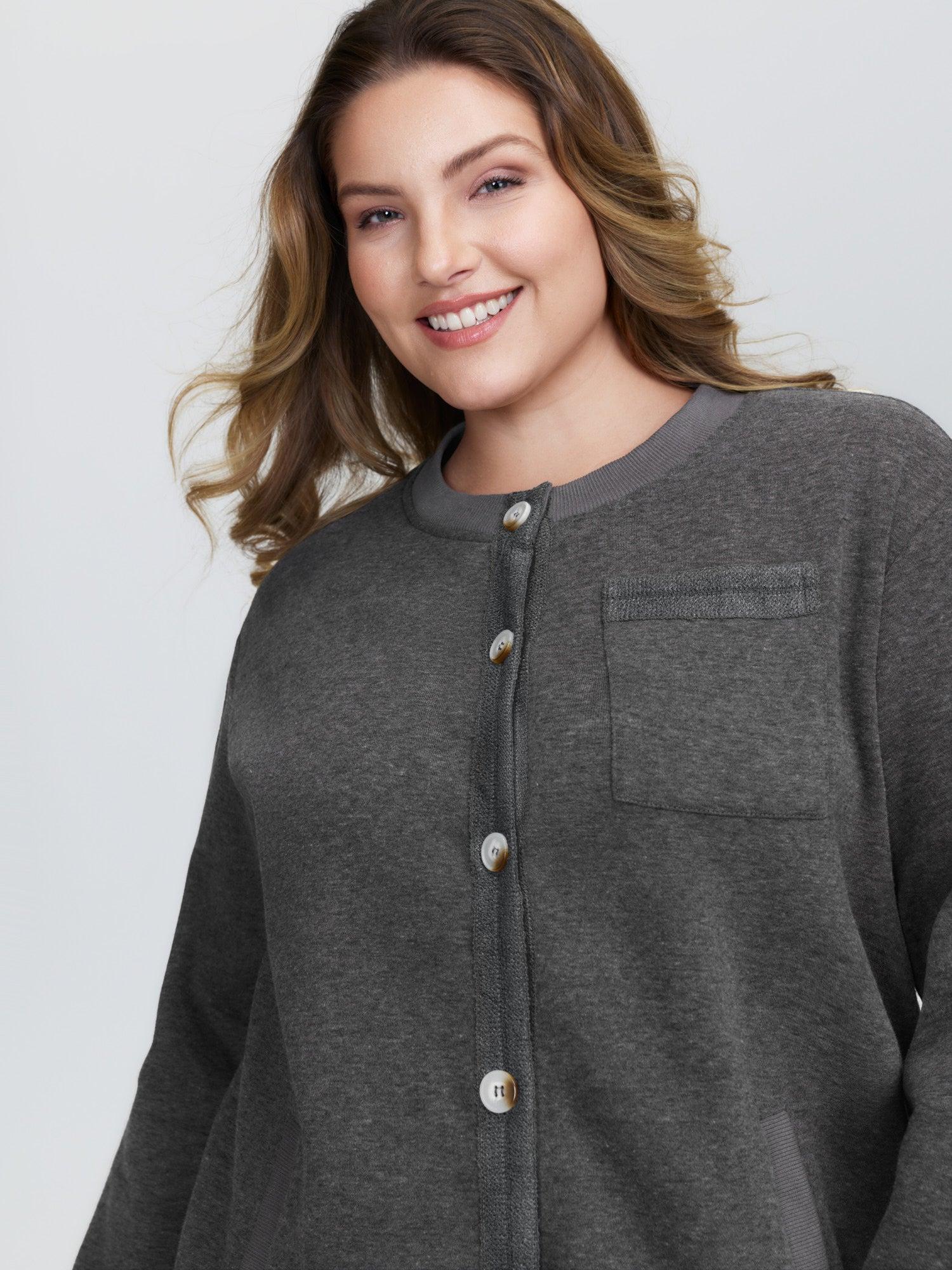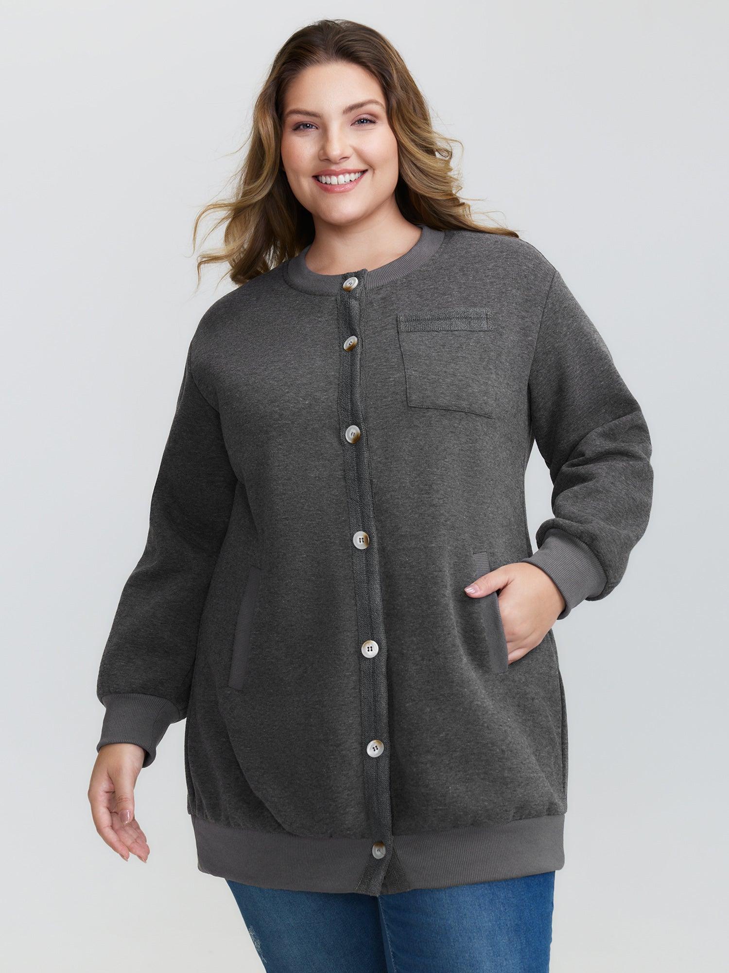 Shop Round Neck Ribbed Hem Button Coat now and redefine your style with confidence at BloomChic. Tailored for mid and plus-size women. This trendy Outerwear Women, sizes 10-30. Color:DarkGray;Style:Leisure;Prints:Non;Details:Button;Pocket:Single-flap pocket;Belt:No-belt;Closure Type:Button;Lining:No-lining