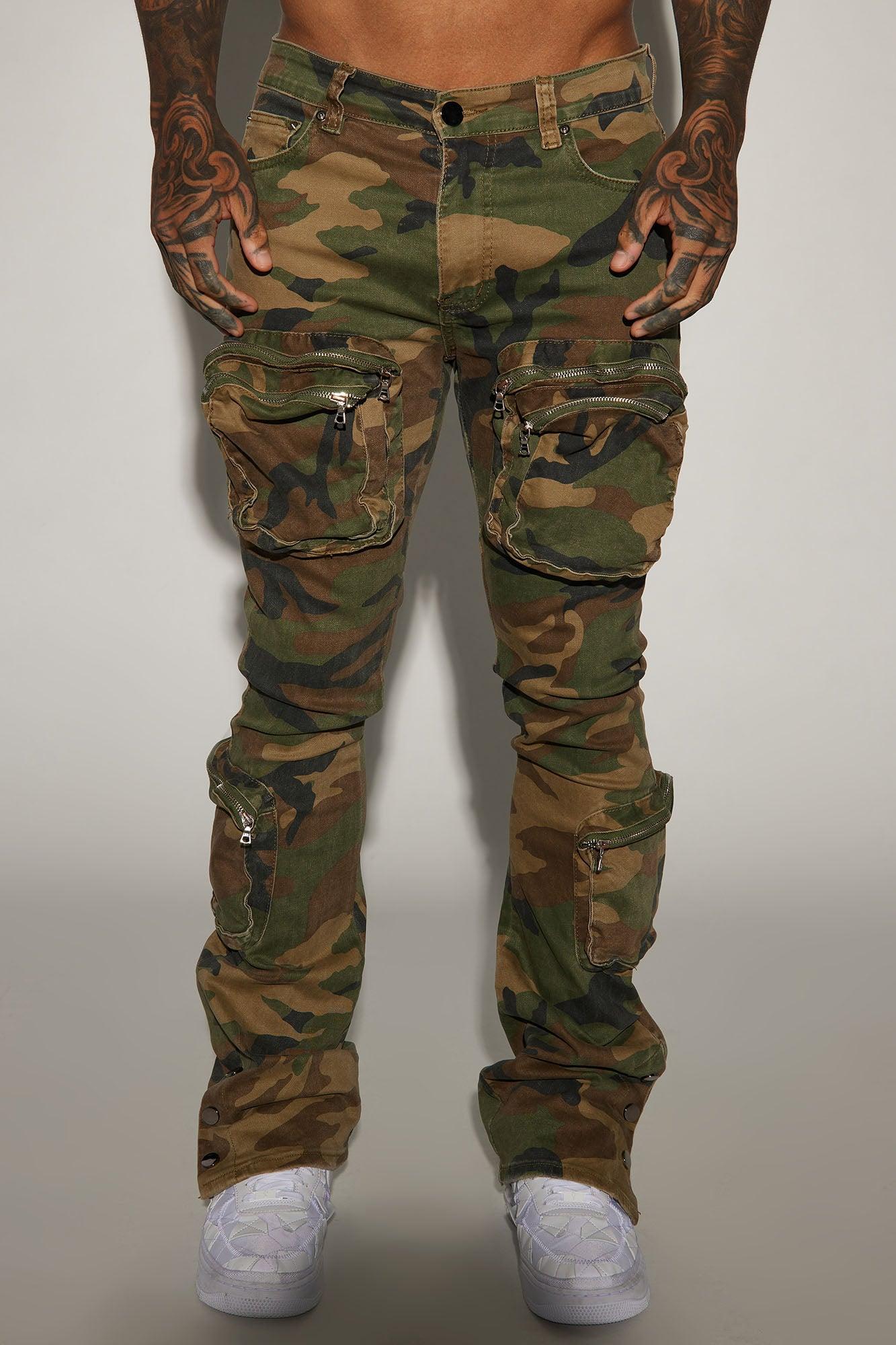 Available In Camouflage. Stacked Skinny Flare Fit 5 Pocket Body Zip Fly Button Closure Round Zipper Pockets Side Snap Button 98% Cotton, 2% Spandex Imported