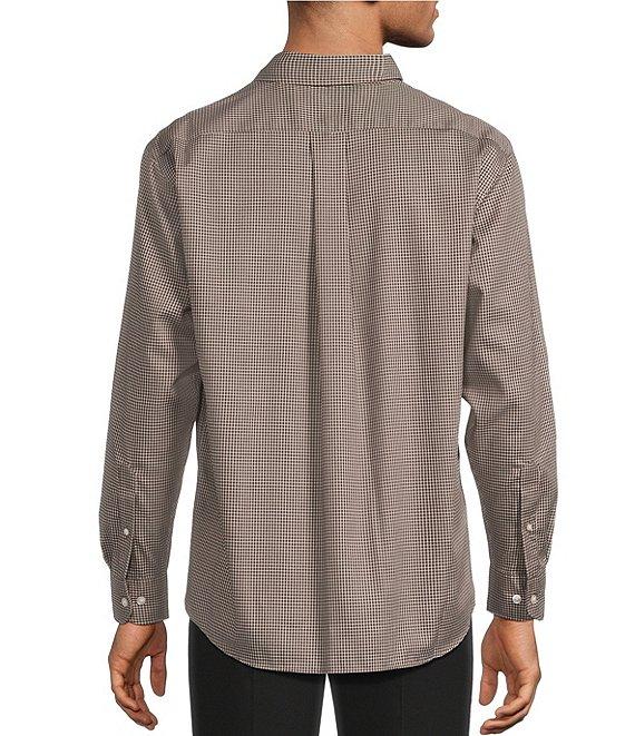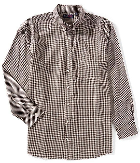 From Roundtree & Yorke TravelSmart, this shirt features: Small check twill Button-down collar Long sleeves Button-front closure Left side patch pocket Shirttail hem Resists wrinkles Cotton/polyester Machine wash warm/tumble dry Imported.