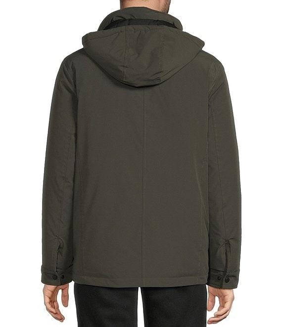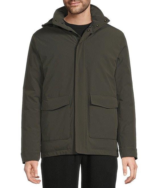 From Roundtree & Yorke, this jacket features: Removable hood Long sleeves Zip-front closure Storm flap with snaps Quilted interior Front hip patch pockets with snap closure and additional side entry pockets Interior chest pocket with snap closure on wearer's left Polyester Machine wash cold/tumble dry Imported.