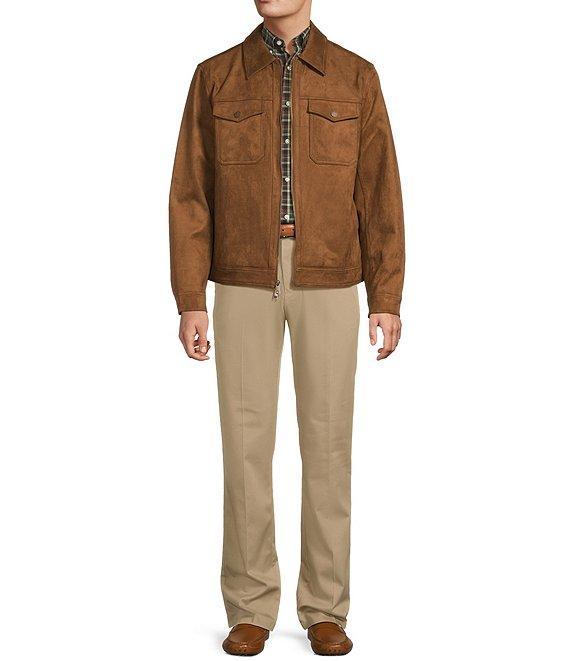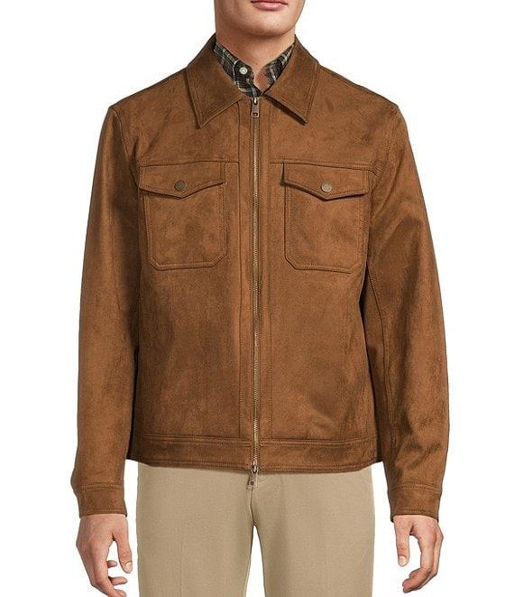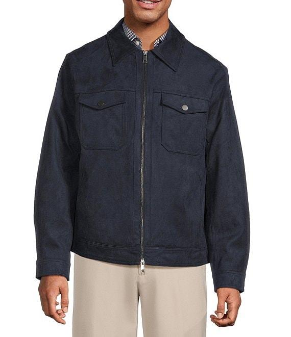 From Roundtree & Yorke, this jacket features: Faux suede Shirt collar Long sleeves Full front 2-way zipper Dual patch pockets with snap closure Front hip pockets 2 interior drop-in pockets Single snap closure sleeves Machine wash warm/tumble dry Imported.