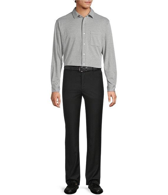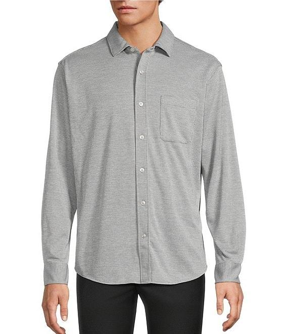 From Roundtree & Yorke, this shirt features: Solid knit fabric Spread collar Long sleeves with cuffs Single chest pocket Full button-down closure Polyester Machine wash warm/tumble dry Imported.