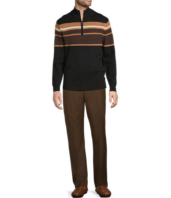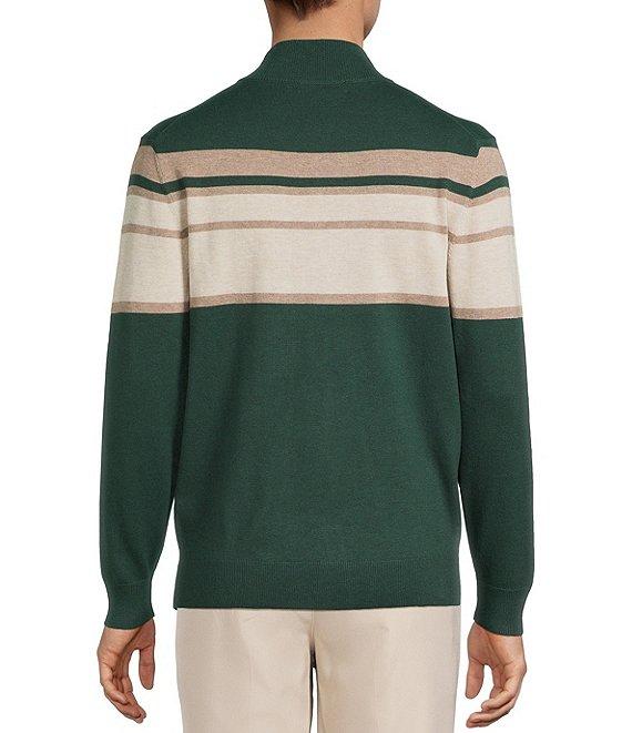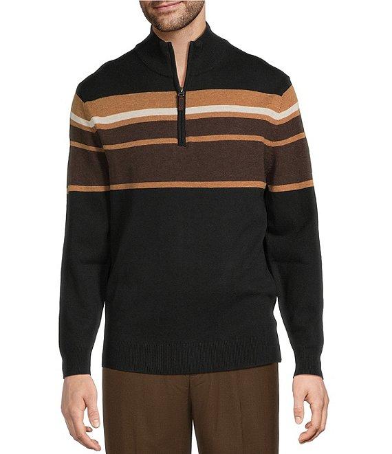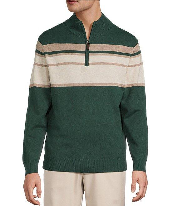 Roundtree & Yorke Long Sleeve Chest Stripe Quarter-Zip Sweater