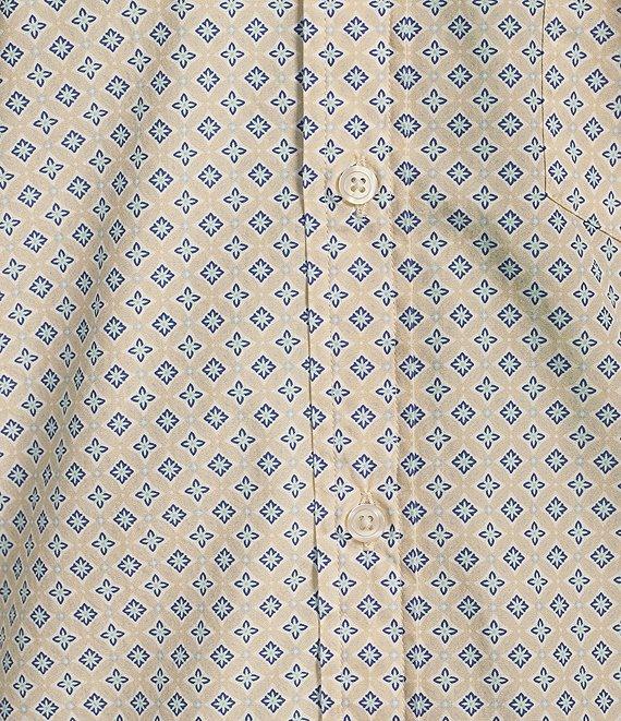 Roundtree & Yorke Long Sleeve Medallion Print Slub Sport Shirt