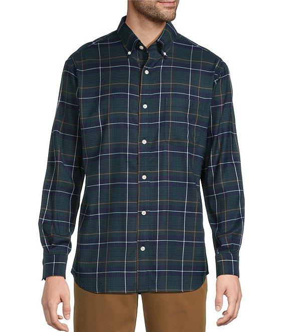 From Roundtree & Yorke, this shirt features: Large plaid performance twill fabric Button-down collar Long sleeves with cuffs Button-front closure Patch pocket on the left side of chest Thermolite All Season Technology Rayon/polyester/spandex Machine wash warm/tumble dry Imported.