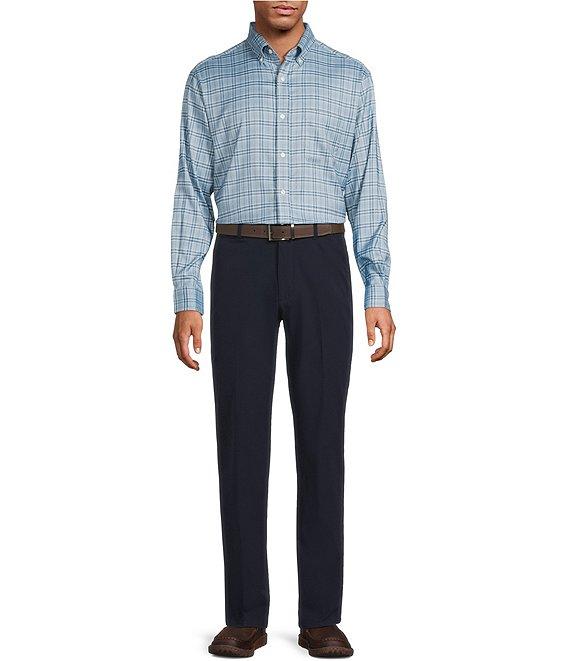 From Roundtree & Yorke, this shirt features: Small plaid performance twill fabric Button down collar Long sleeves with cuffs Button-front closure Patch pocket on the left side of chest Thermolite All Season Technology Rayon/polyester/spandex Machine wash warm/tumble dry Imported.
