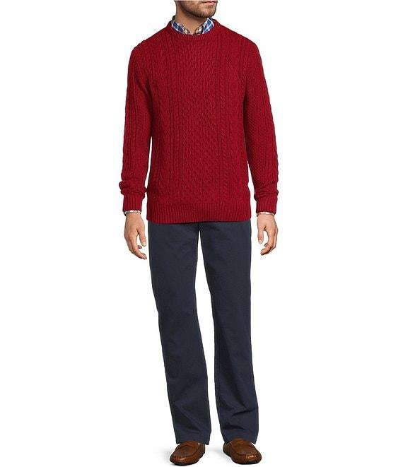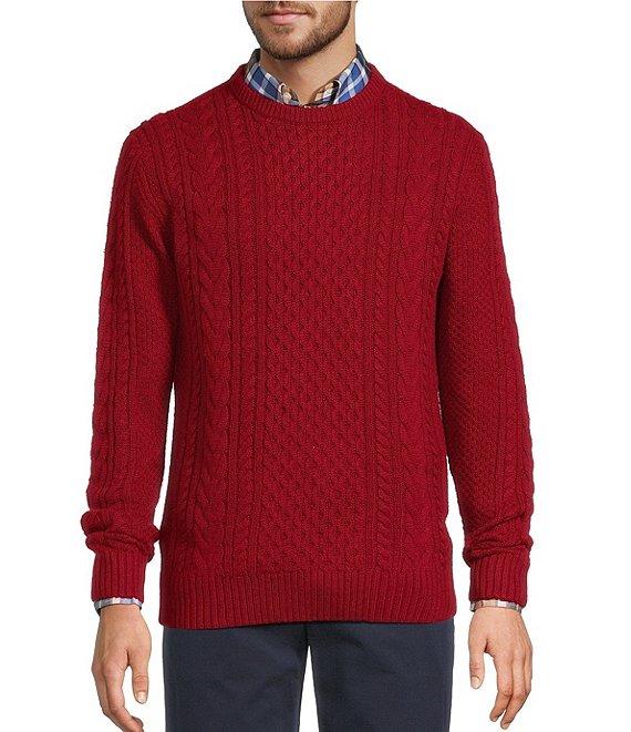 Roundtree & Yorke Long Sleeve Solid Cable Knit Crew Sweater