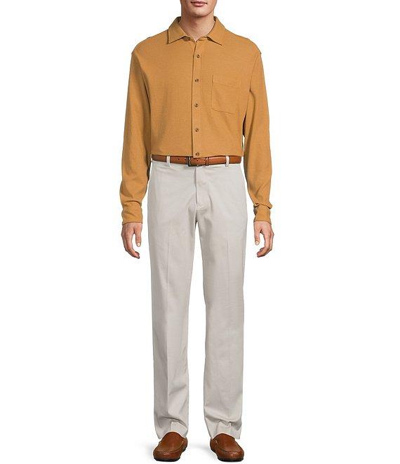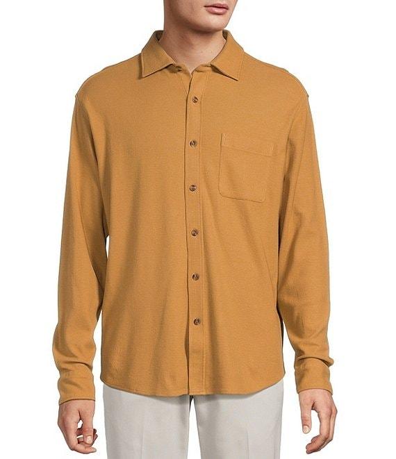 Roundtree & Yorke Long Sleeve Solid Waffle Coat Front Shirt