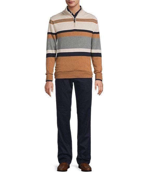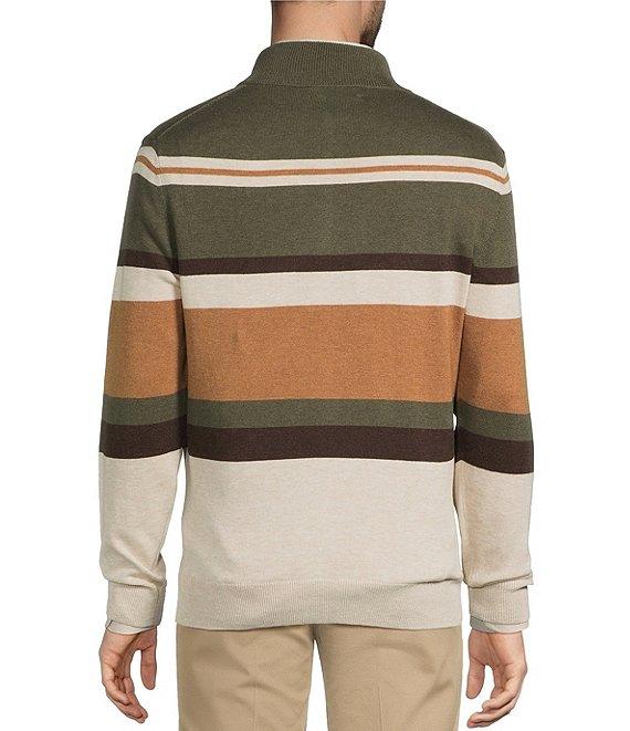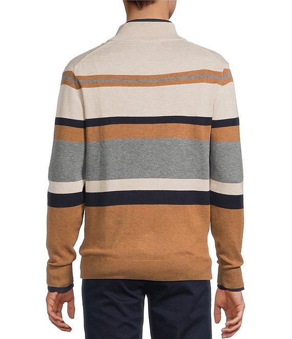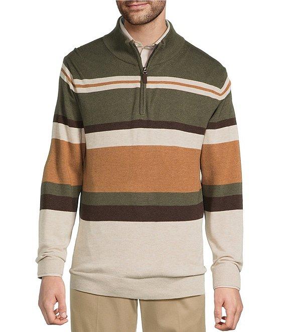 Roundtree & Yorke Long Sleeve Stripe Quarter-Zip Sweater