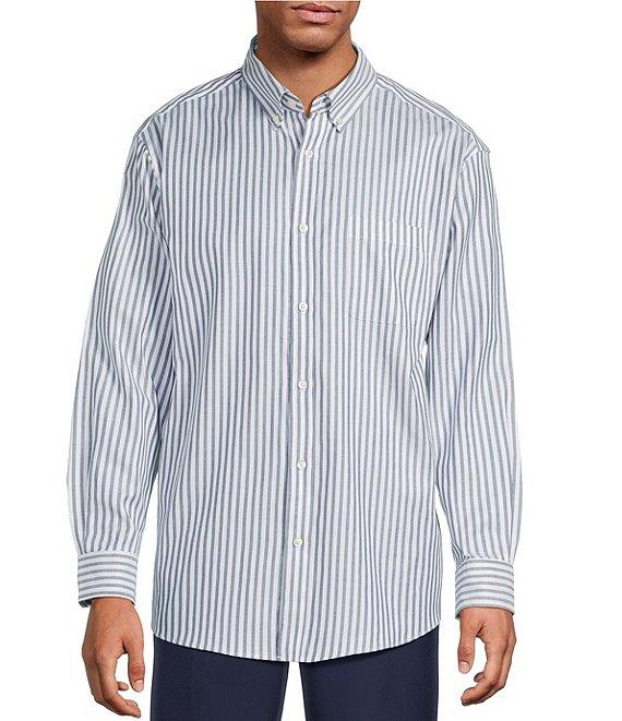 Roundtree & Yorke Long Sleeve Striped Oxford Sport Shirt