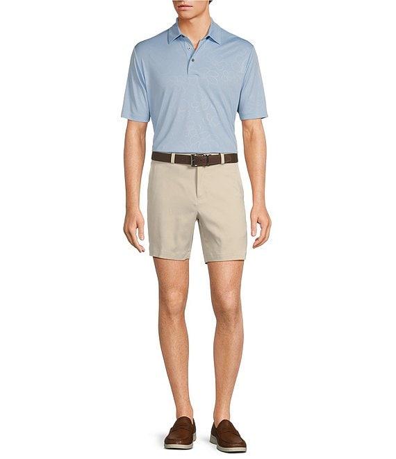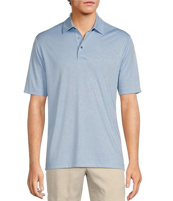 From Roundtree & Yorke Performance, this polo shirt features: Embossed flower print Polo collar 3-button placket Short sleeves Pullover construction Keeps you dry ForeFLEX Technology Easy care Polyester/elastane Machine wash/tumble dry Imported.