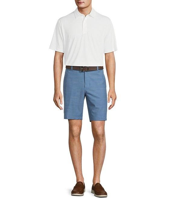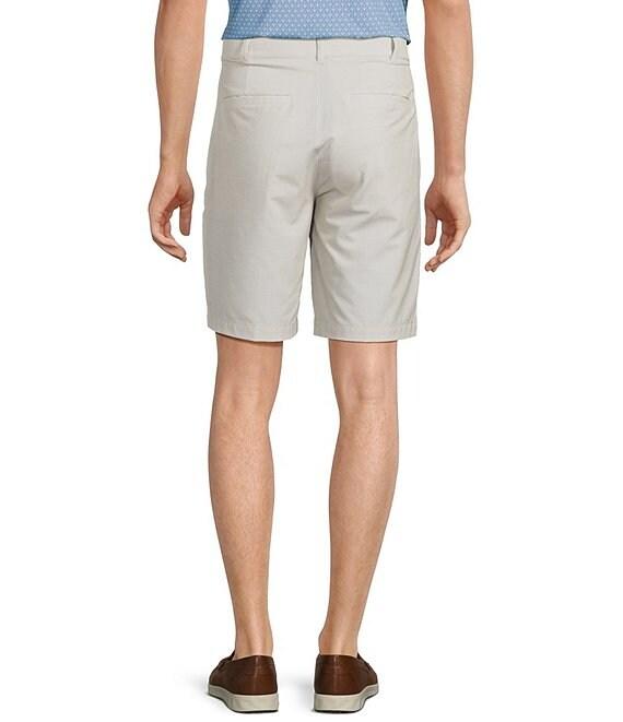 From Roundtree & Yorke, these shorts feature: Performance stretch fabrication Flat front Belt loops Button-front/zip closure Inside elastic waist Detailed stitching Approx. 9" inseam Classic fit Moisture-wicking Easy care Polyester/cotton/spandex blend Machine wash/tumble dry Imported.