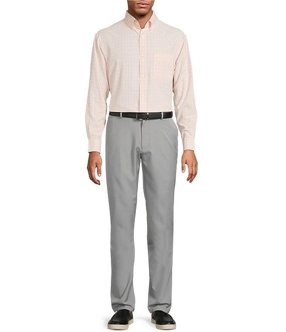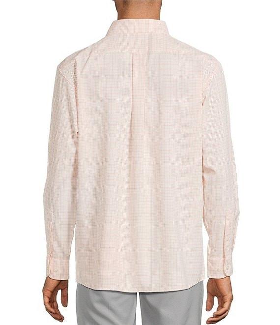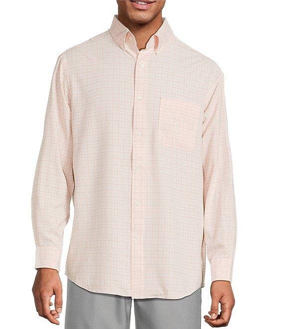 From Roundtree & Yorke Performance, the Traveler shirt features: Lightweight chambray fabric Check plaid Button-down collar Long sleeves with cuffs Button-front closure Single patch pocket at wearer's left chest Shirttail hem Keeps you cool and dry Blocks the sun Moves with you 100% polyester Machine wash warm/tumble dry Imported.