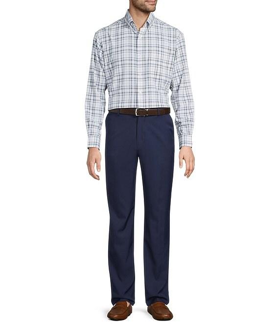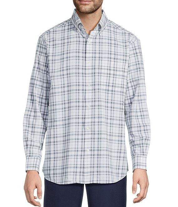 From Roundtree & Yorke Performance, the Traveler shirt features: Lightweight chambray fabric Medium plaid Button-down collar Long sleeves with cuffs Full button front closure Single patch pocket at wearer's left chest Shirttail hem Keeps you cool and dry Blocks the sun Moves with you 100% polyester Machine wash warm/tumble dry Imported.