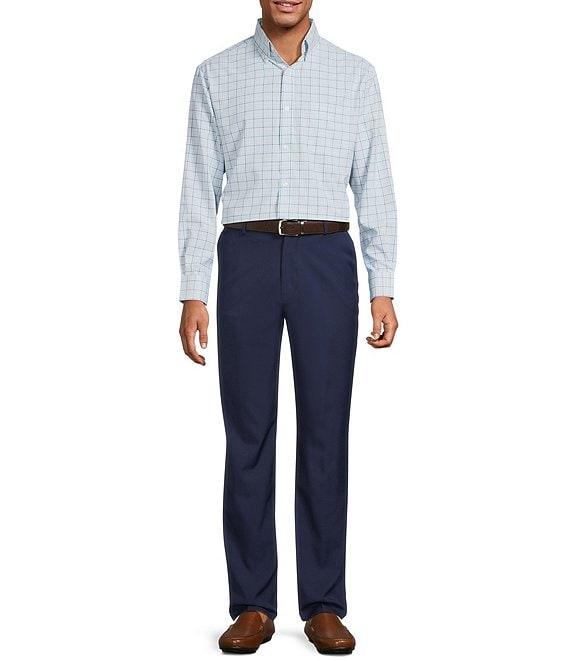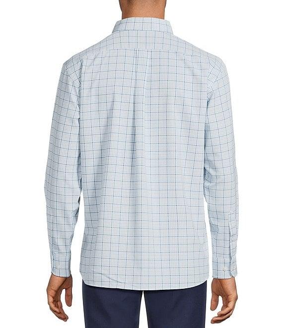 From Roundtree & Yorke Performance, the Traveler shirt features: Lightweight chambray fabric Windowpane plaid Button down collar Long sleeves with cuffs Full button front closure Single patch pocket at wearer's left chest Shirttail hem Keeps you cool and dry Blocks the sun Moves with you 100% polyester Machine wash warm/tumble dry Imported.